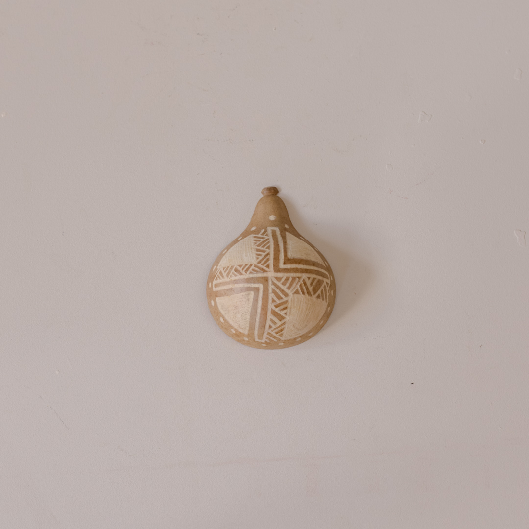 Mini cuia com com grafismos indígenas esculpidos artesanalmente no fruto da cuieira por artesãos da etnia Tukano