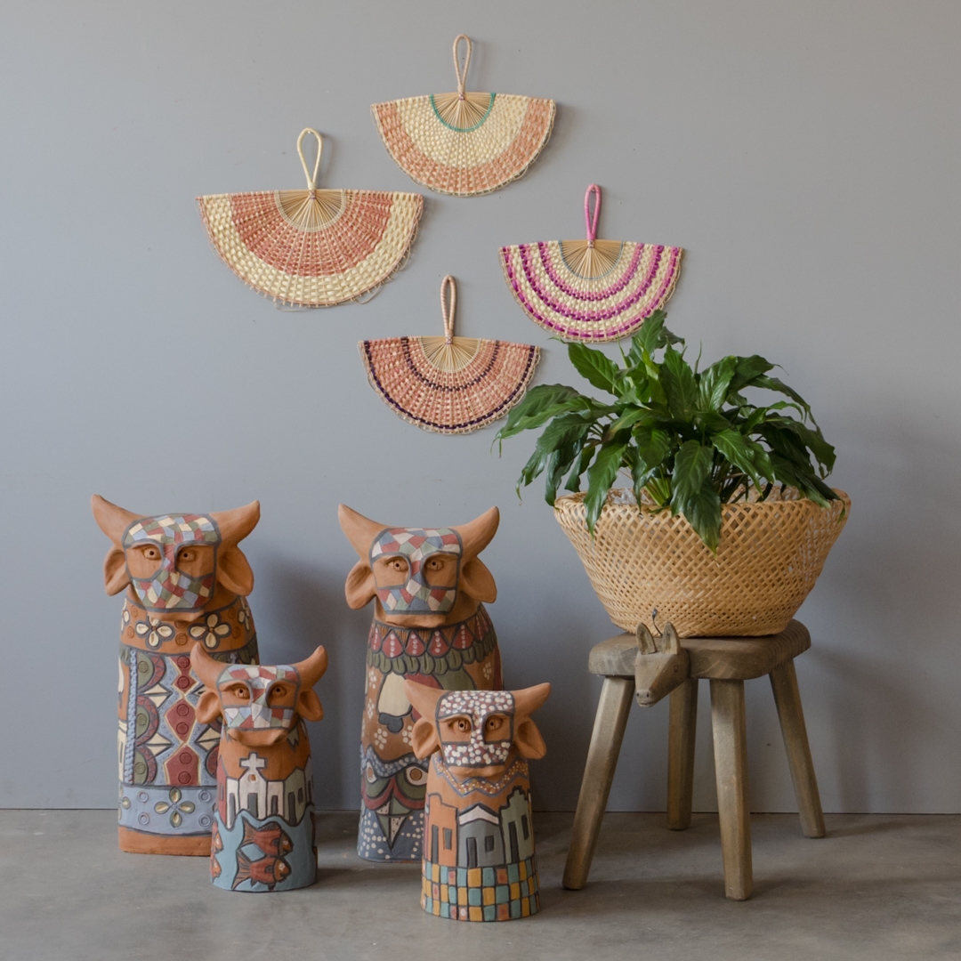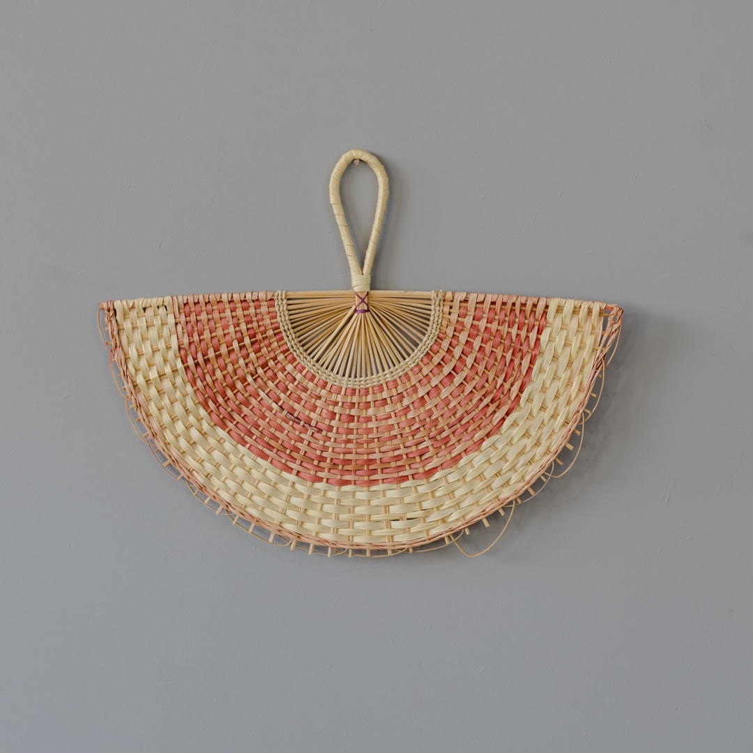 Leque de palha colorido, trançado em fibra de buriti pela etnia indígena Baré