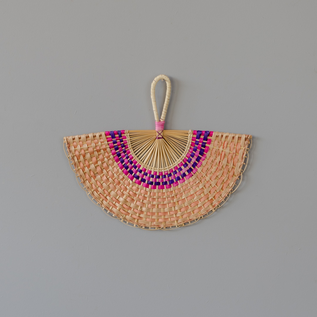 Leque de palha colorido, trançado em fibra de buriti pela etnia indígena Baré
