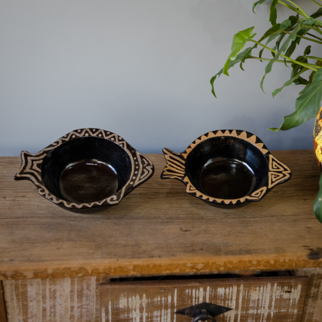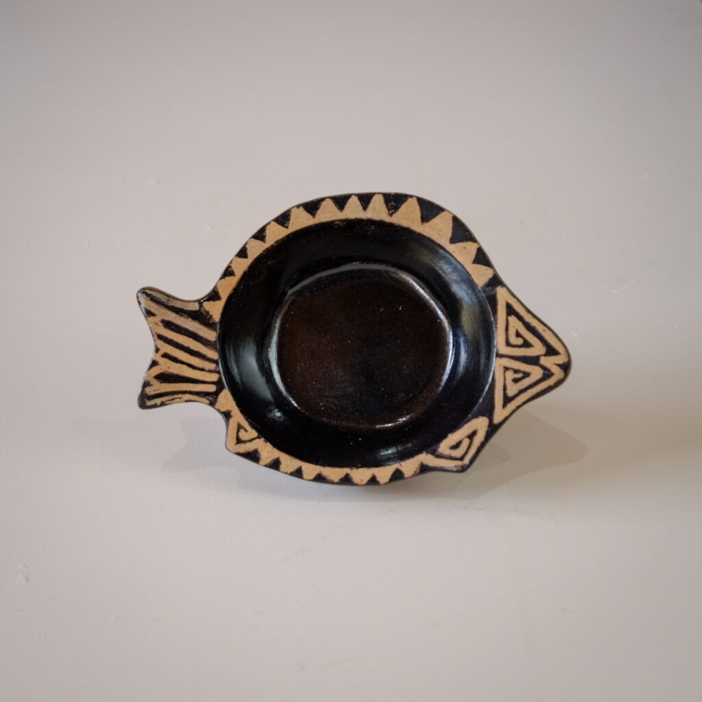 Petisqueira de cerâmica com grafismos, feita e pintada manualmente por artesãos indígenas Guarani M'bya