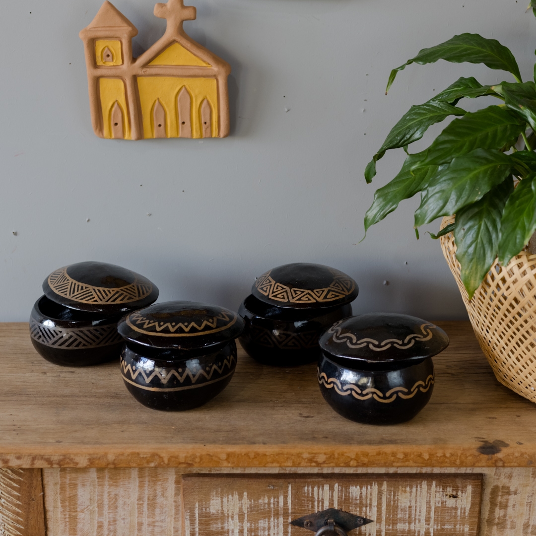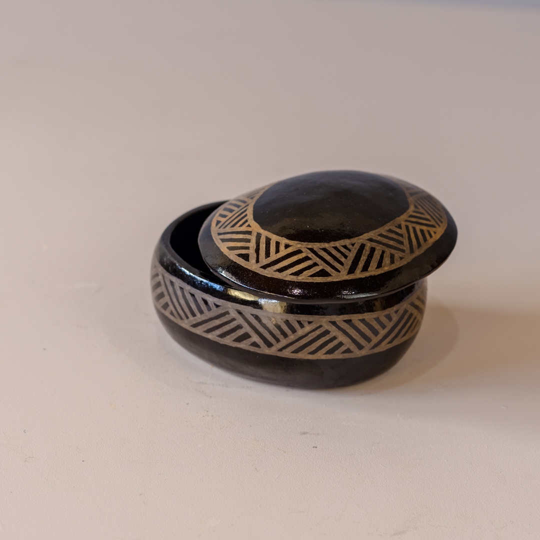 Porta-joias de cerâmica com grafismos indígenas feito e pintado artesanalmente por artesãos da etnia Tukano