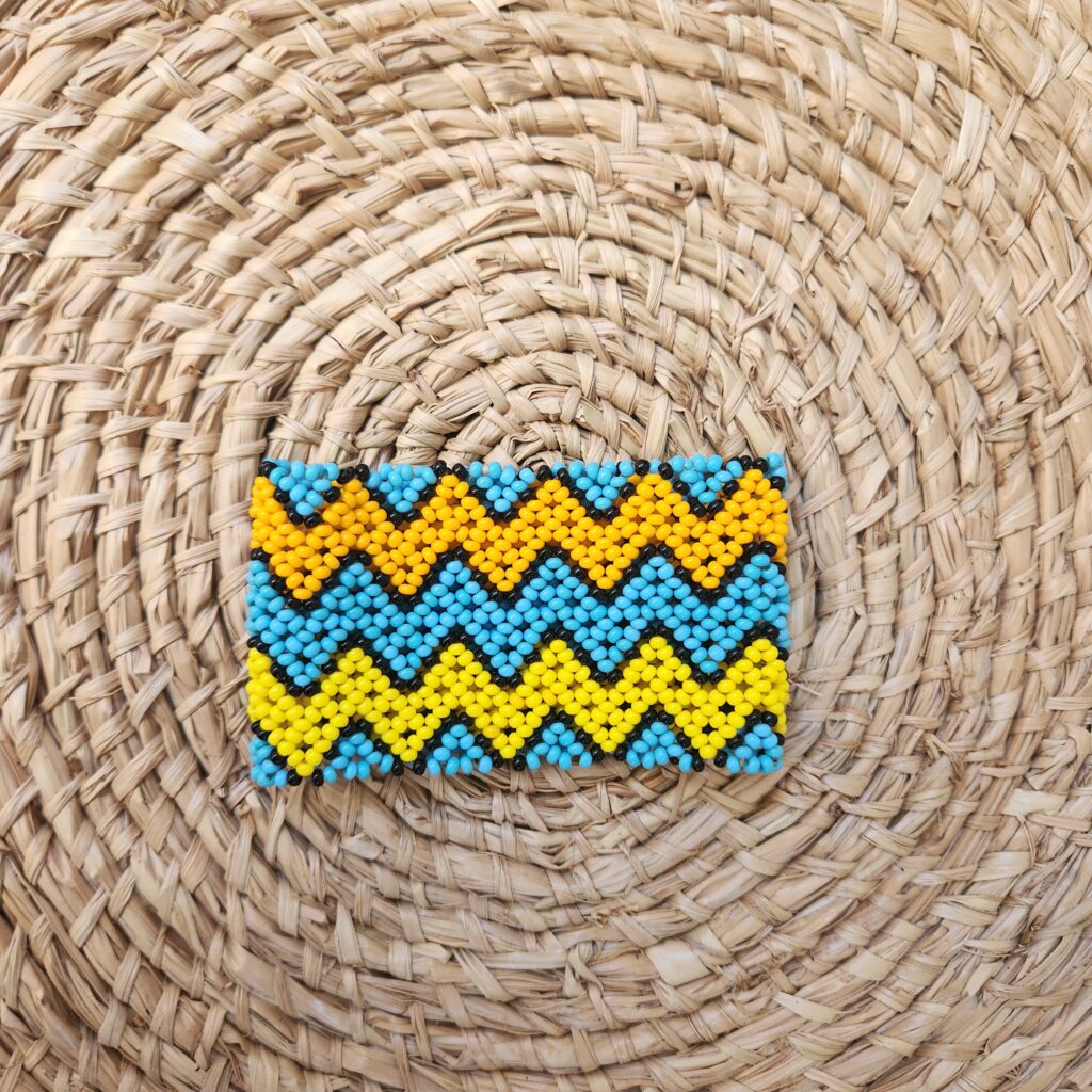 Pulseira de miçangas feita artenalmente pela comunidade Indígena Waurá