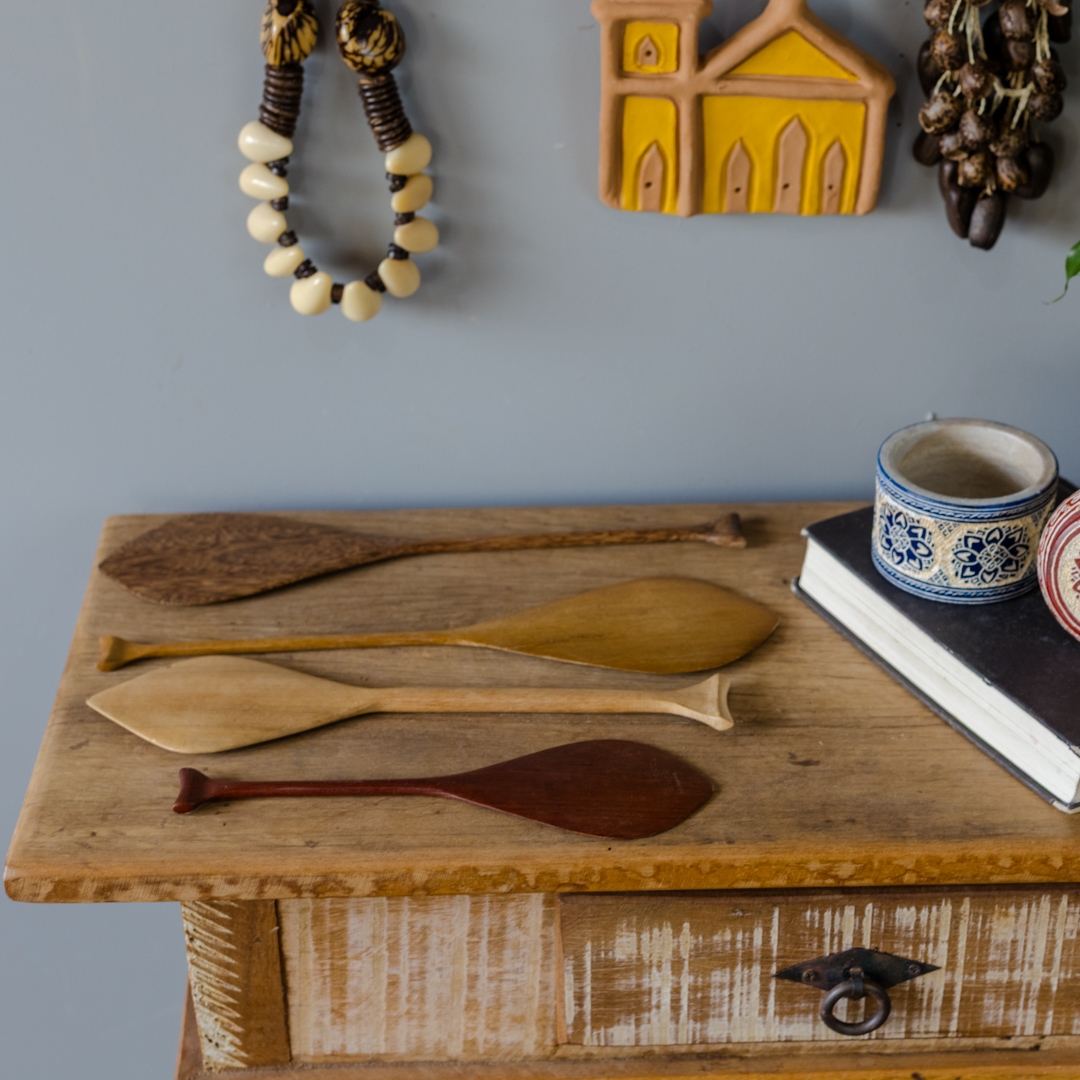 Todas as peças de madeira são confeccionadas com refugos recuperados em vários pontos da cidade ou abandonados na mata, a partir dos quais os artesãos de Novo Airão produzem os mais variados objetos, como caixas, utensílios e acessórios. A formação das Unidades de Conservação na região onde se encontra Novo Airão, na década de 1980, e a proibição de extração de matéria-prima trouxeram conflitos sociais e dificuldades para os moradores que tradicionalmente ocupavam as terras e delas tiravam seu sustento. Nesse cenário, o turismo ecológico e o artesanato despontaram como possibilidades tanto de geração de renda para essas comunidades, como de preservação das tradições culturais do lugar. As mãos que esculpem a madeira se inspiram principalmente na fauna da região e em objetos muito presentes no cotidiano dos moradores.