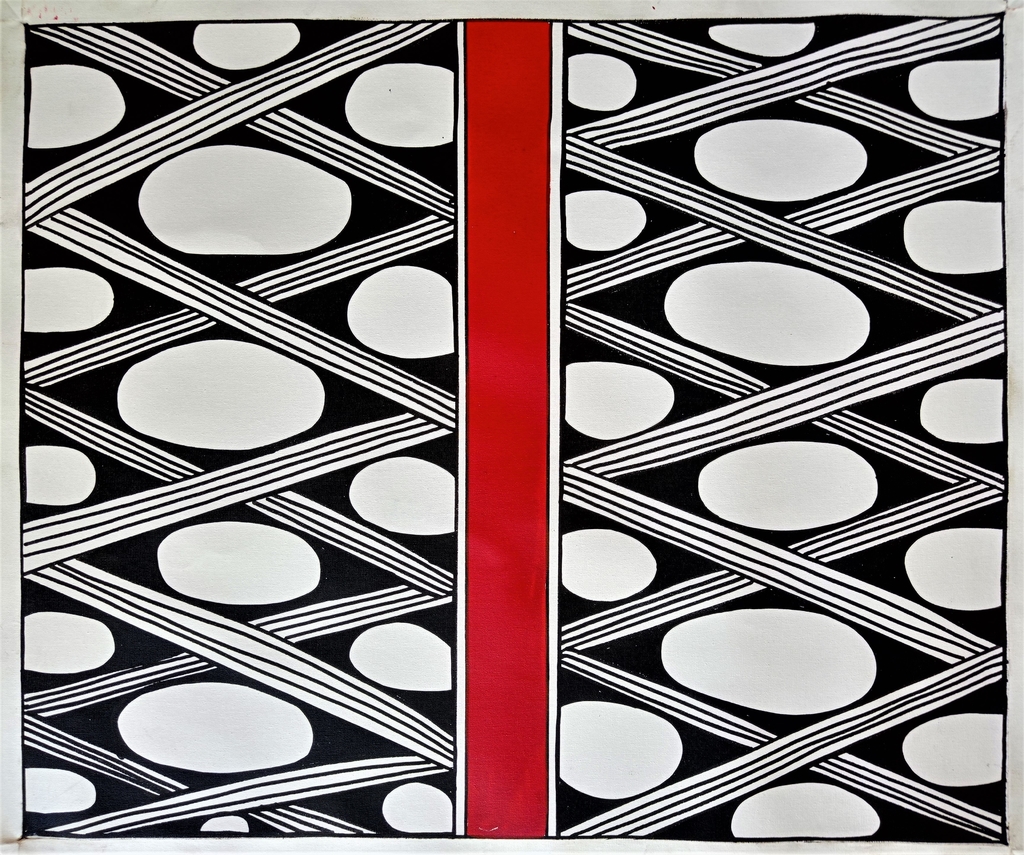 Os grafismos representam um pilar muito importante da cultura indígena. Eles são mais que uma forma de se comunicar, representam valores, sentimentos, contam histórias, e estão presentes na pintura corporal e nos acessórios. Mais do que elementos estéticos, eles representam espíritos e transmitem as forças atribuídas a eles. São parte da cosmologia de cada povo, e são usados em ocasiões e por pessoas determinadas. Waxamani faz parte da etnia indígena Mehinako, e vive na aldeia Kaüpuna, no Alto Xingu (MT). Ele sempre teve habilidade para desenhar e hoje se dedica principalmente à produção de telas com objetivo de valorizar e resgatar grafismos quase extintos. Para estampar o tecido feito em algodão artesanal ele não usa “régua da cidade, nem pincel”, diz que “sua mão é seu próprio pincel”, e com muita habilidade faz os traços usando palito de madeira e pigmentos naturais de Urucum (vermelho) e Jenipapo (preto).