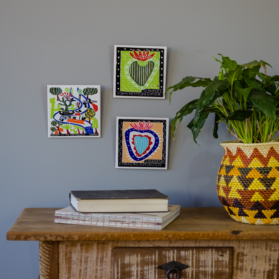 Azulejo de Parede Xilogravura J. Borges - Coração Amoroso