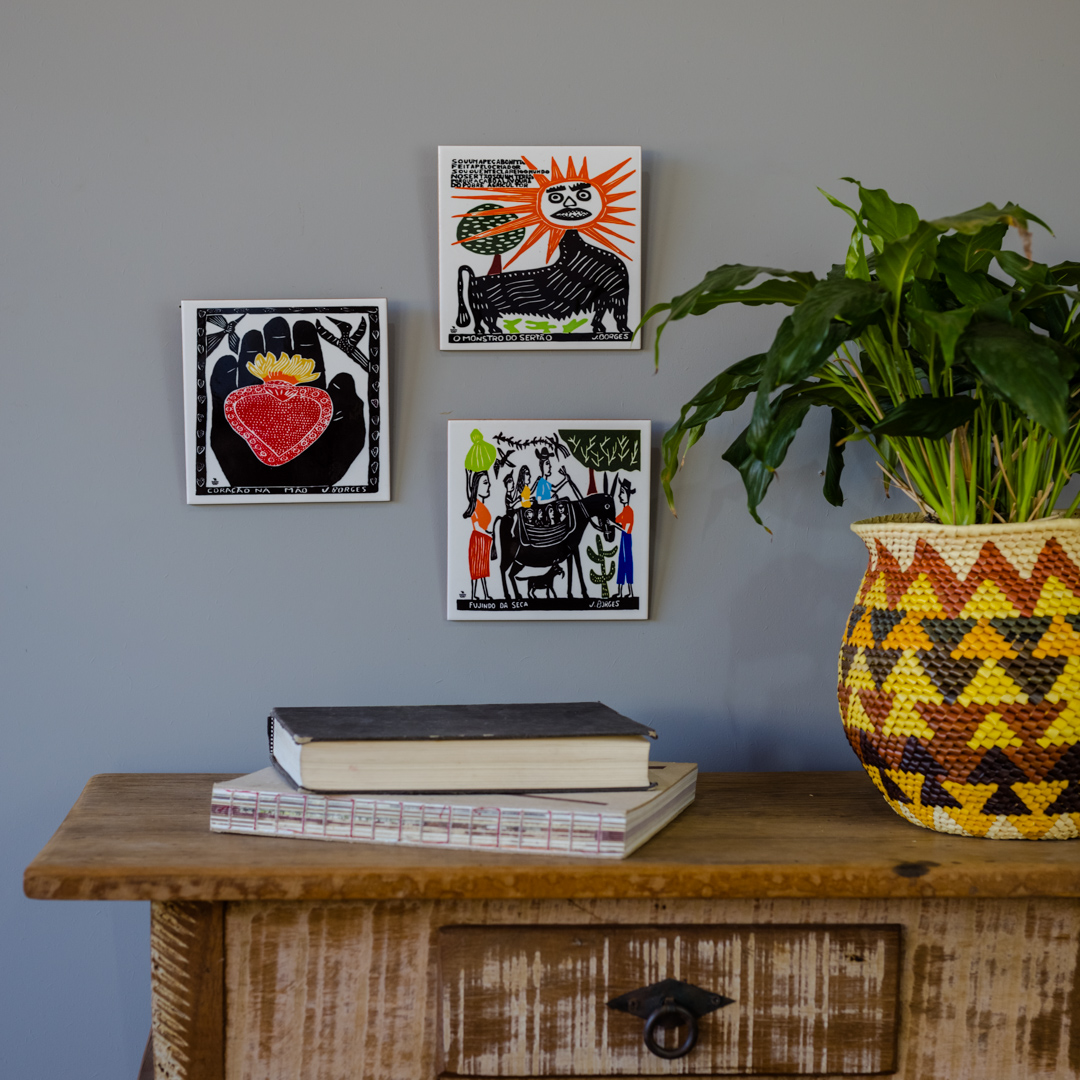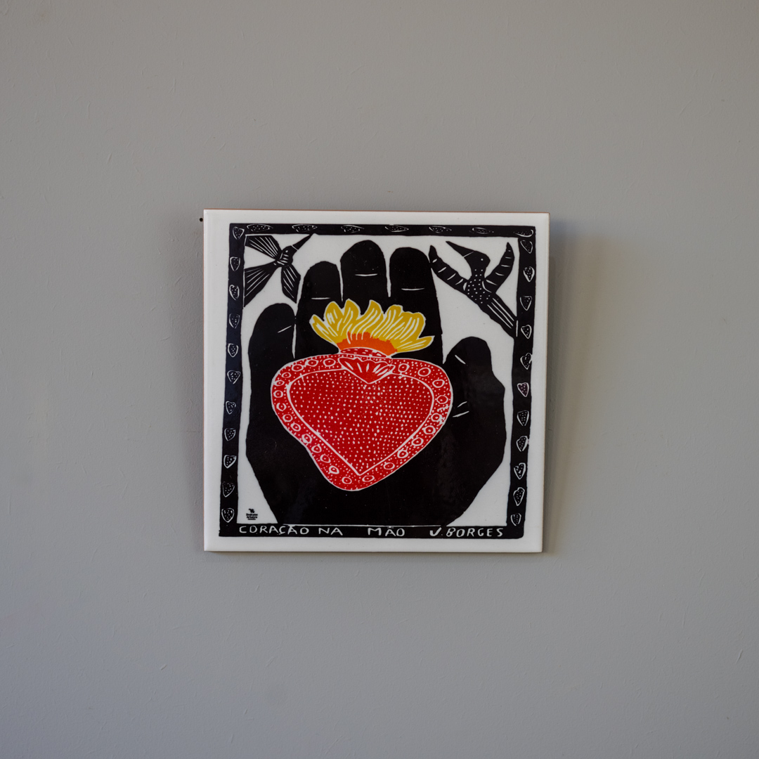 Azulejo de Parede Xilogravura J. Borges - Coração na Mão