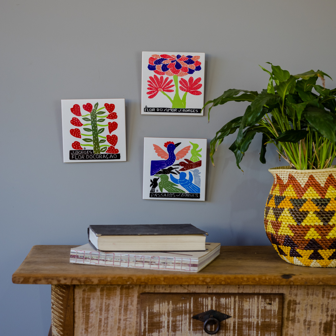 Azulejo de Parede Xilogravura J. Borges - Flor do Coração