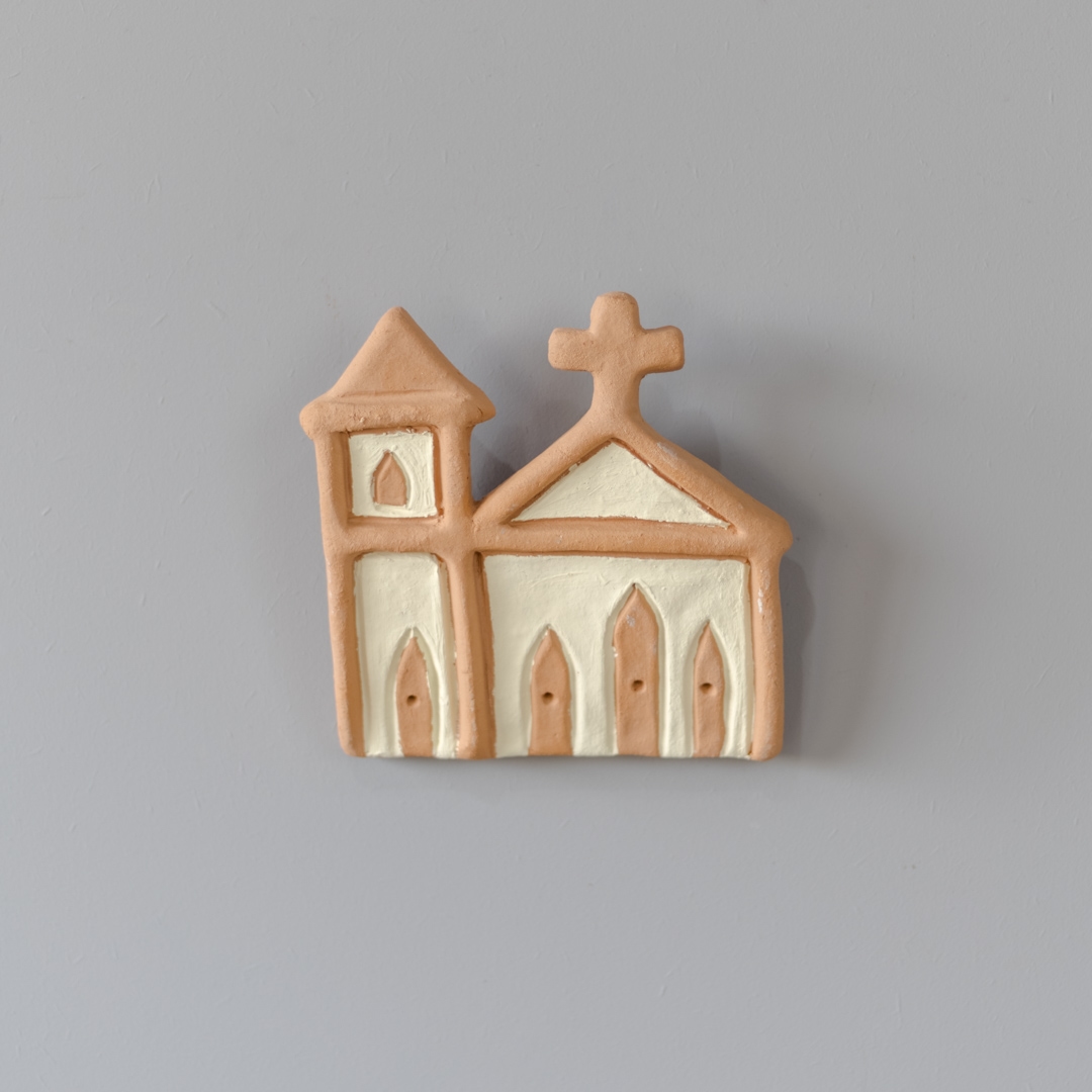 Igrejinha de cerâmica de parede pintada e feita manualmente