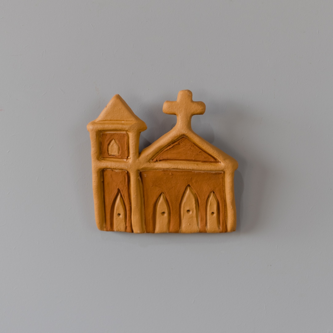 Igrejinha de cerâmica de parede pintada e feita manualmente