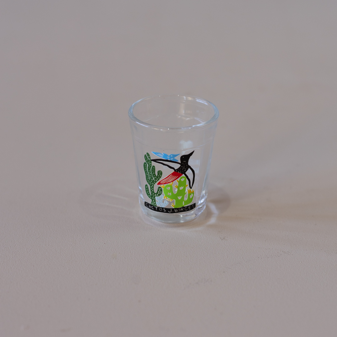 Copinho de cachaça de vidro estampado com xilogravura de J. Borges