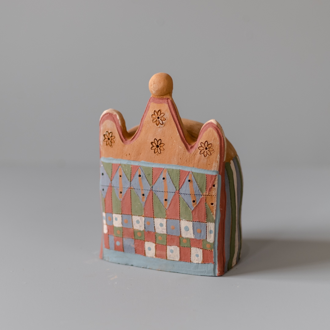 Outro elemento marcante em sua produção são as peças que fazem referência aos chapéus dos guerreiros, ícones visuais do Auto dos Guerreiros, manifestação cultural fortemente presente em Alagoas. Ao transpor esses elementos para o barro, a artesã preserva e reinterpreta símbolos que fazem parte da identidade cultural de sua região.