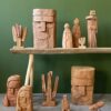 Escultura totem cabeça homem feita em madeira pelo artesão Luiz Benício