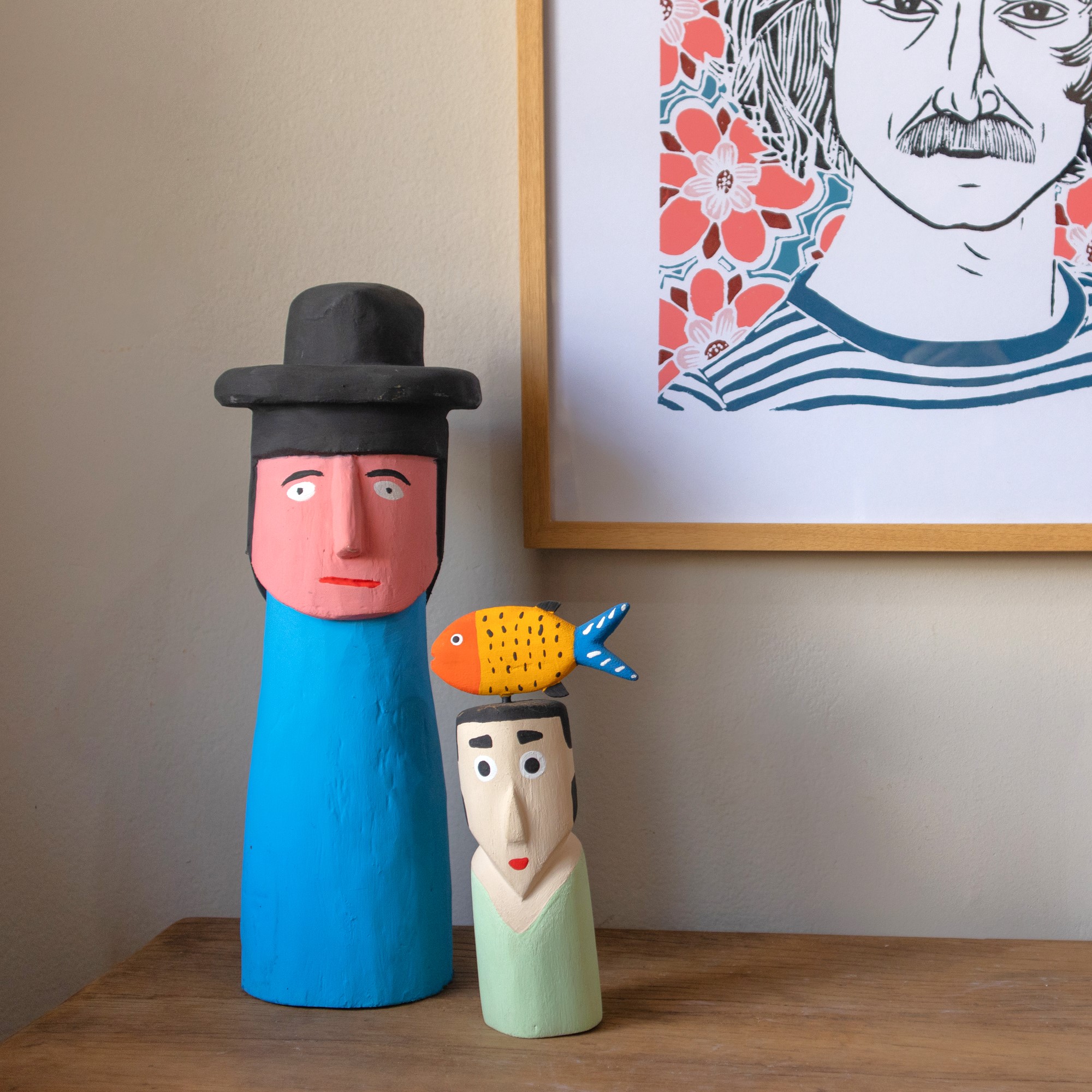 Boneco esculpido em madeira e pintado manualmente