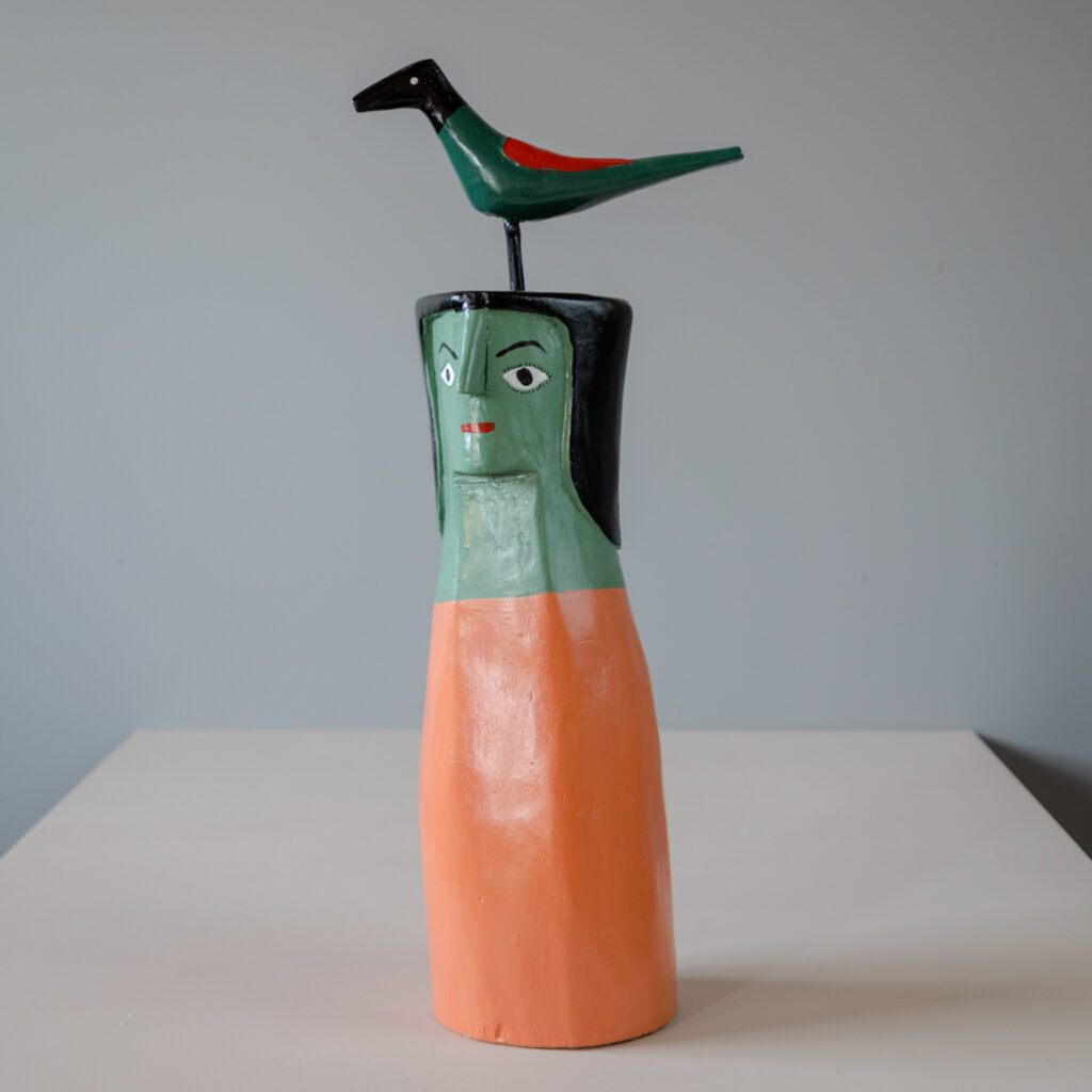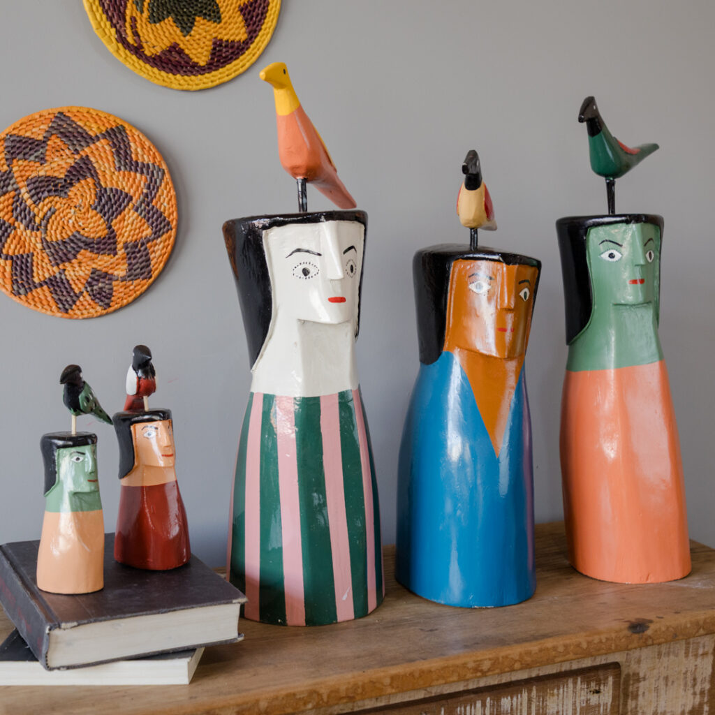 Boneco esculpido em madeira e pintado manualmente