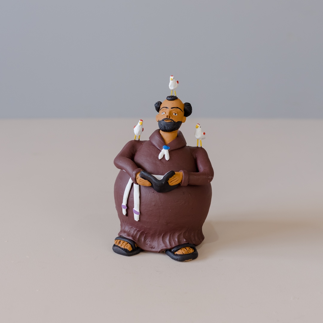 São Francisco de cerâmica com adornos, moldados e pintados à mão