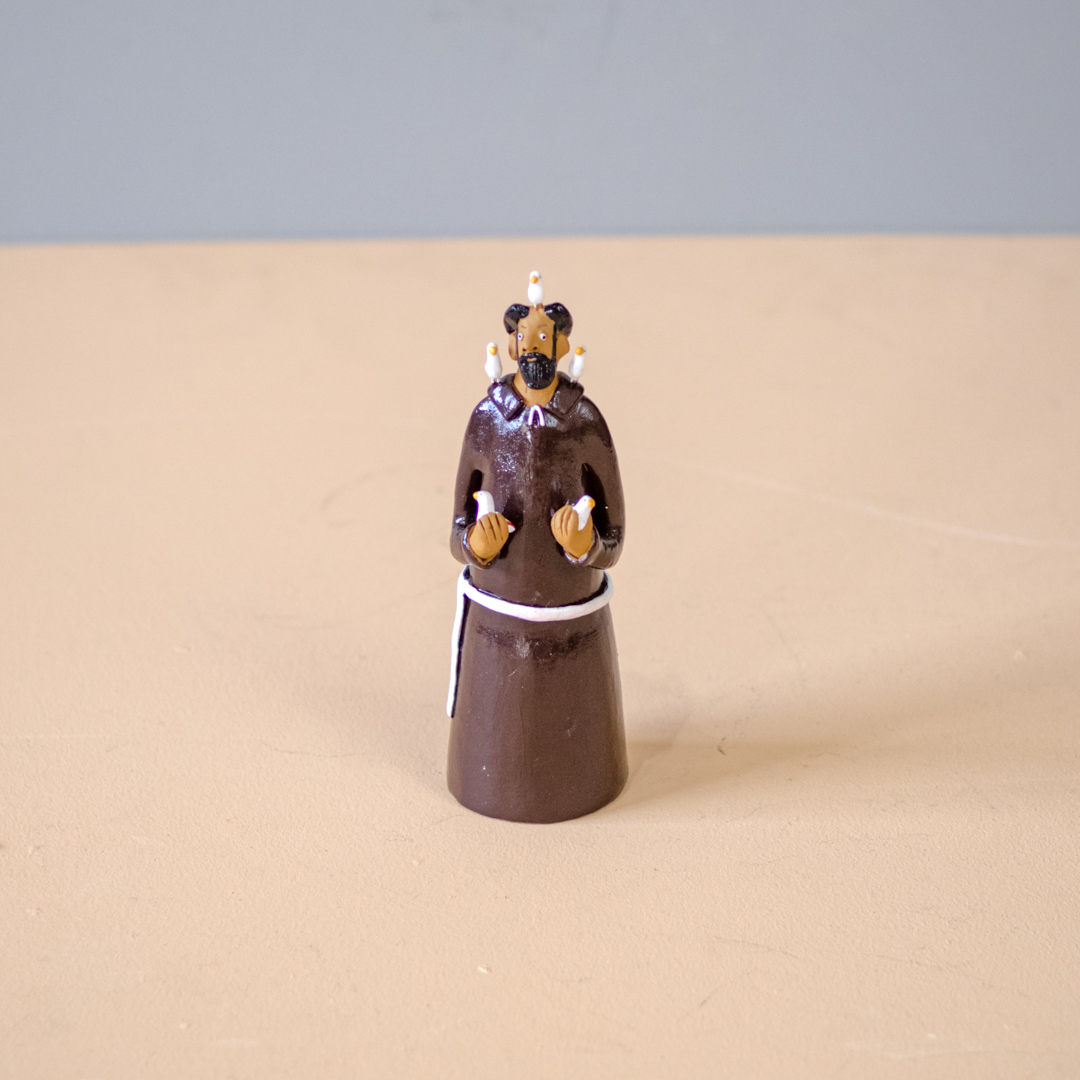 Escultura de São Francisco em Cerâmica, moldada e pintada manualmente pelo Mestre Cícero do Vale