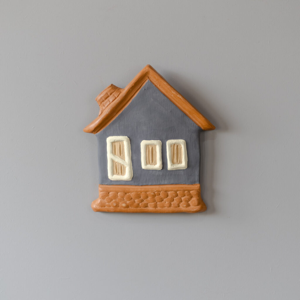 Casinha de cerâmica de parede pintada e feita manualmente