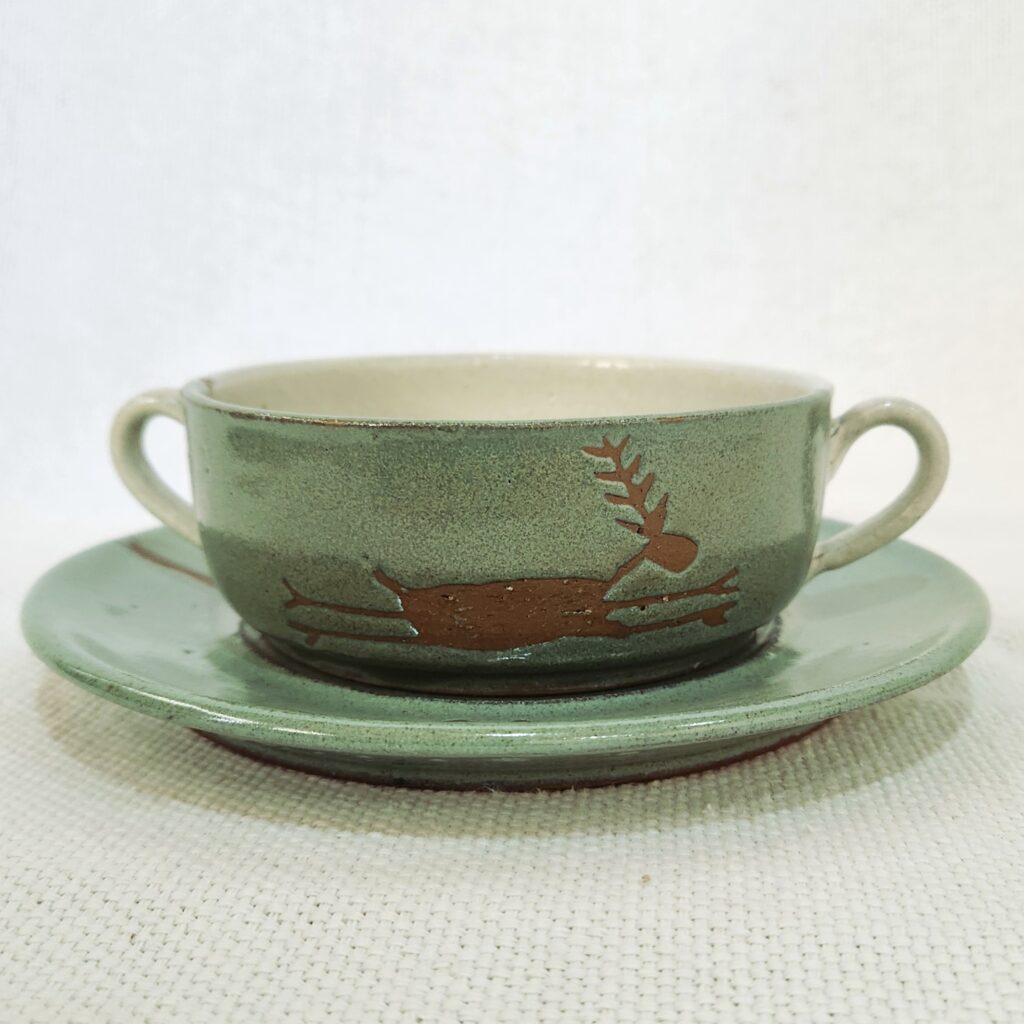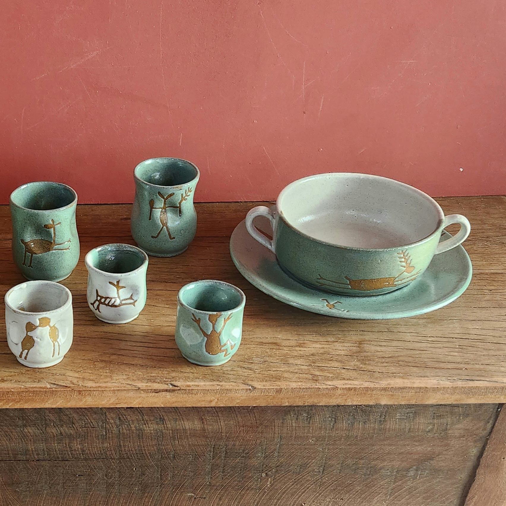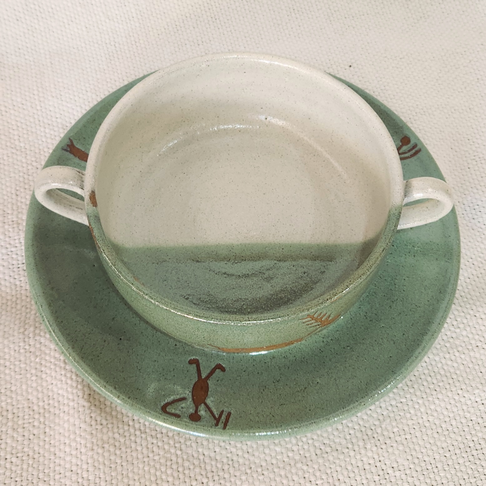 Tigela Cerâmica com Prato Serra da Capivara Verde e Natural