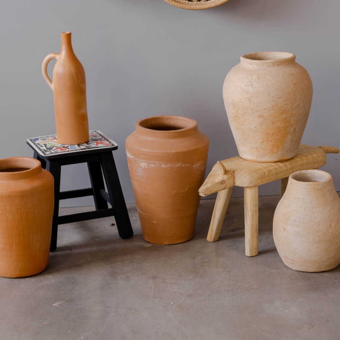 Todas as peças são 100% naturais, “argila sob argila”, e uma das técnicas utilizadas é a chamada “tabatinga”, cuja origem remete aos povos indígenas, primeiros habitantes locais. Essa técnica consiste em misturar diferentes tons de barro, e ele conta: “minha avó era indígena, usavam a tabatinga como pintura para adornar as peças”