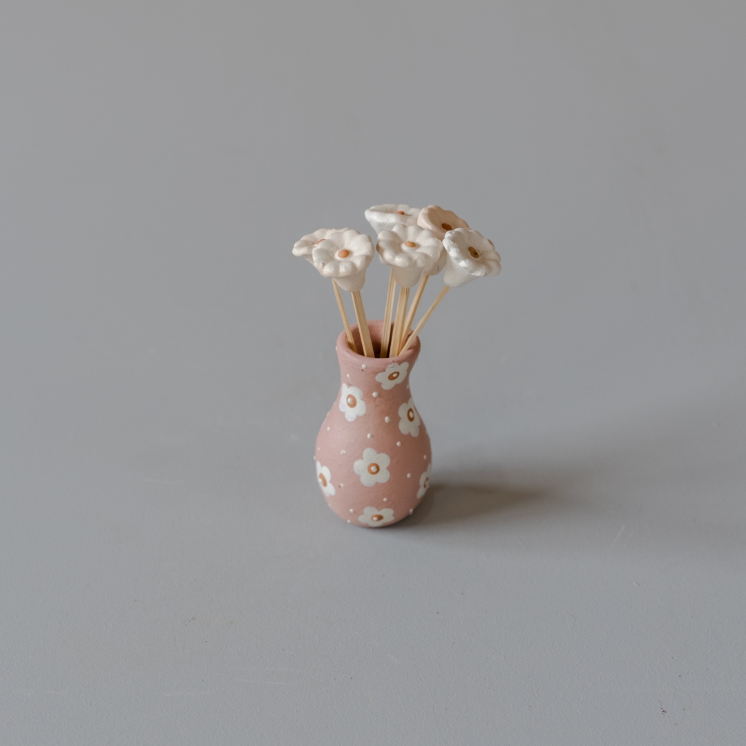 Vasinho Cerâmica Jequitinhonha Rosa com Florzinhas (PP)