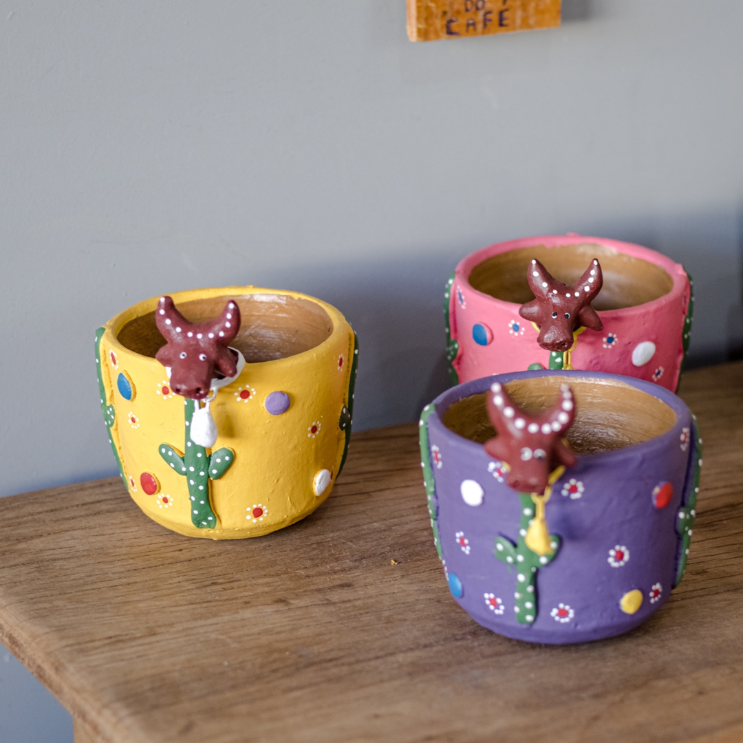 Vasinho de Cerâmica com cabeça de "Bumba Meu Boi", esculpido e pintado à mão