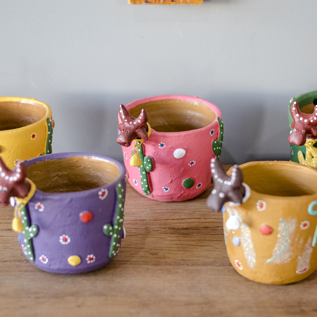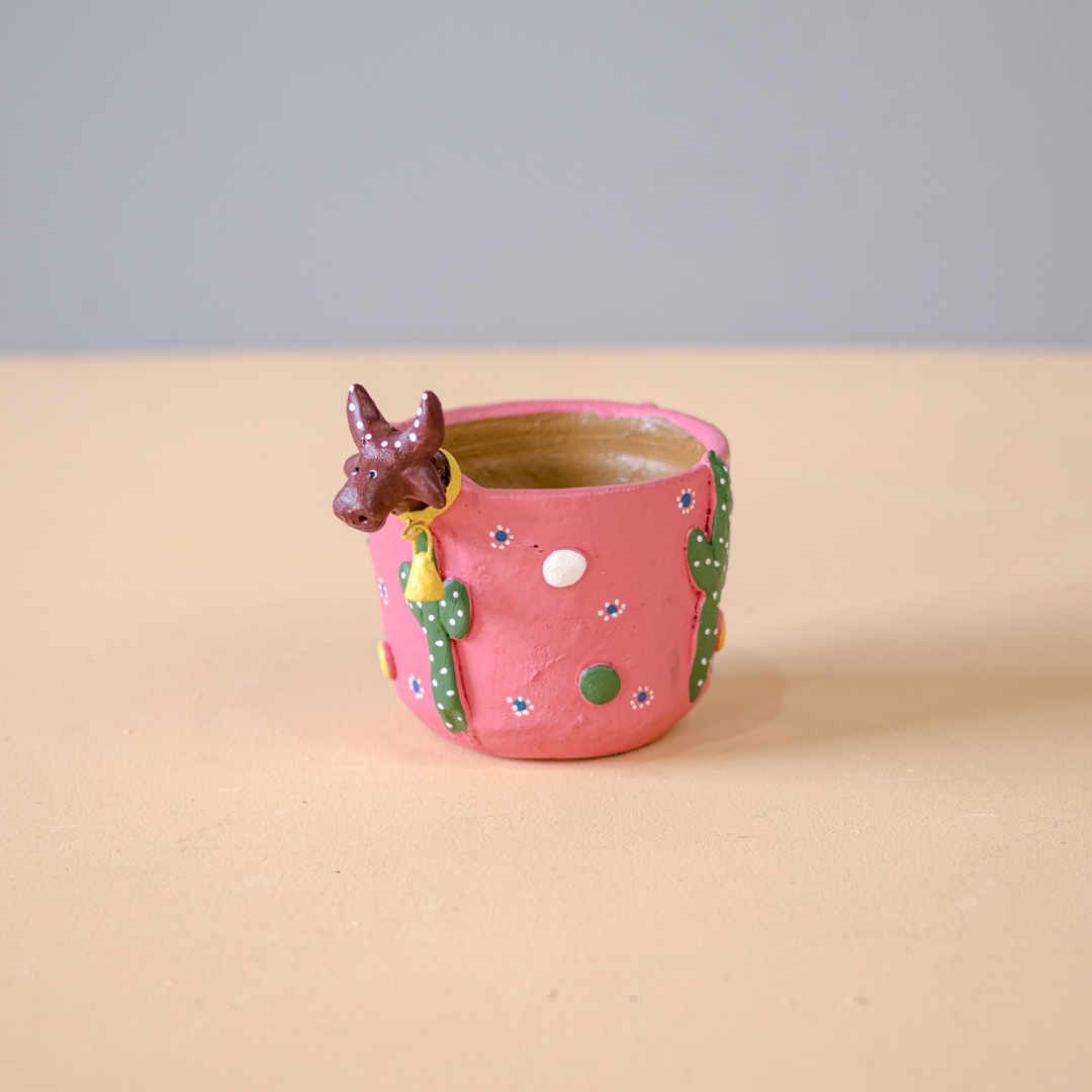 Vasinho de Cerâmica com cabeça de "Bumba Meu Boi", esculpido e pintado à mão