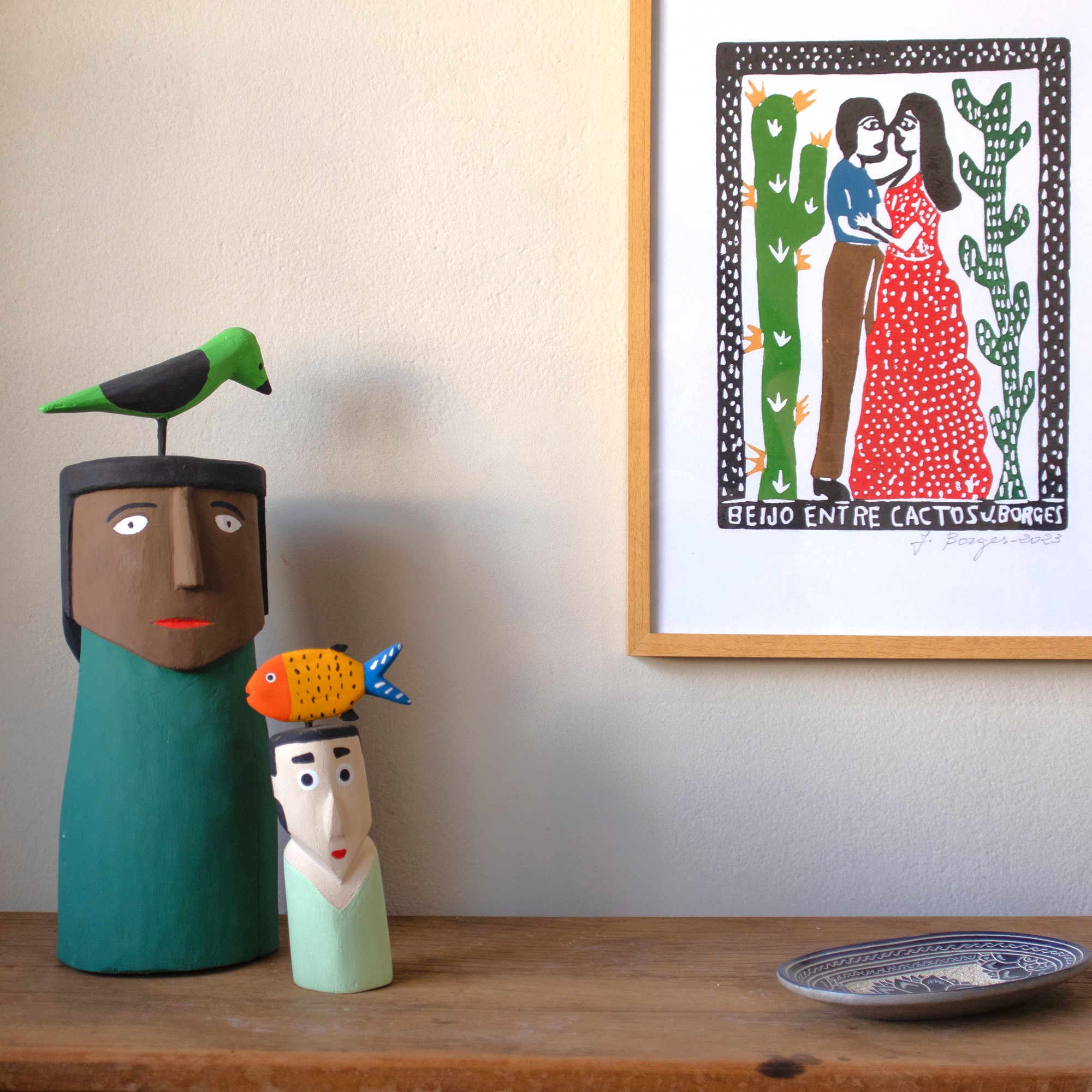 Quadro Xilogravura J. Borges: Beijo Entre Cactos (M)