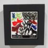 Quadrinho de azulejo com estampas variadas de xilogravura em moldura de madeira