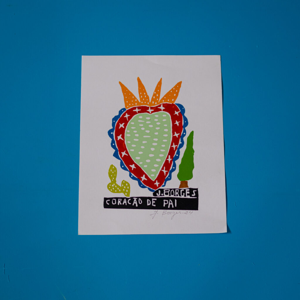 Xilogravura assinada por J. Borges: Coração de Pai (P)