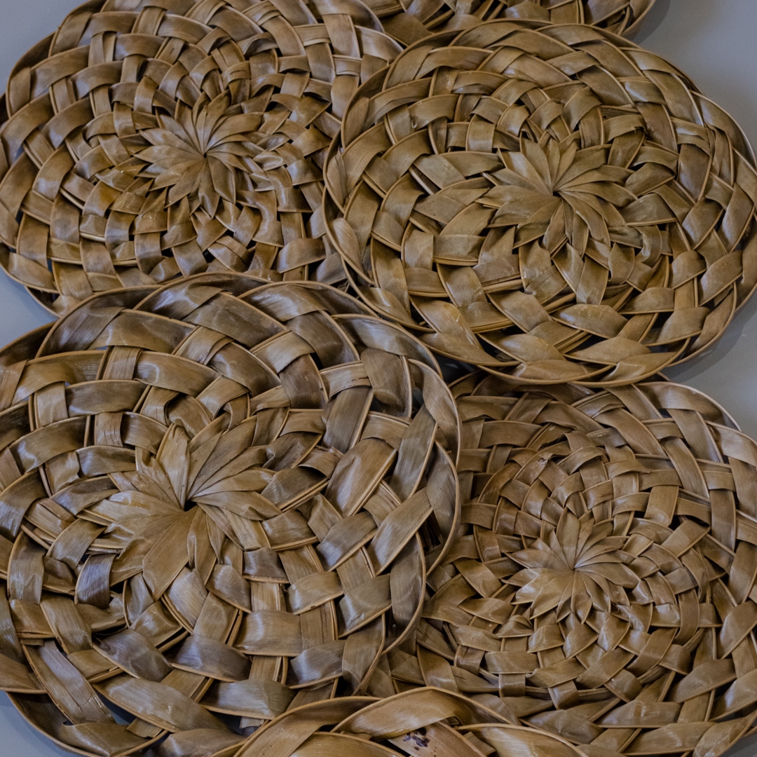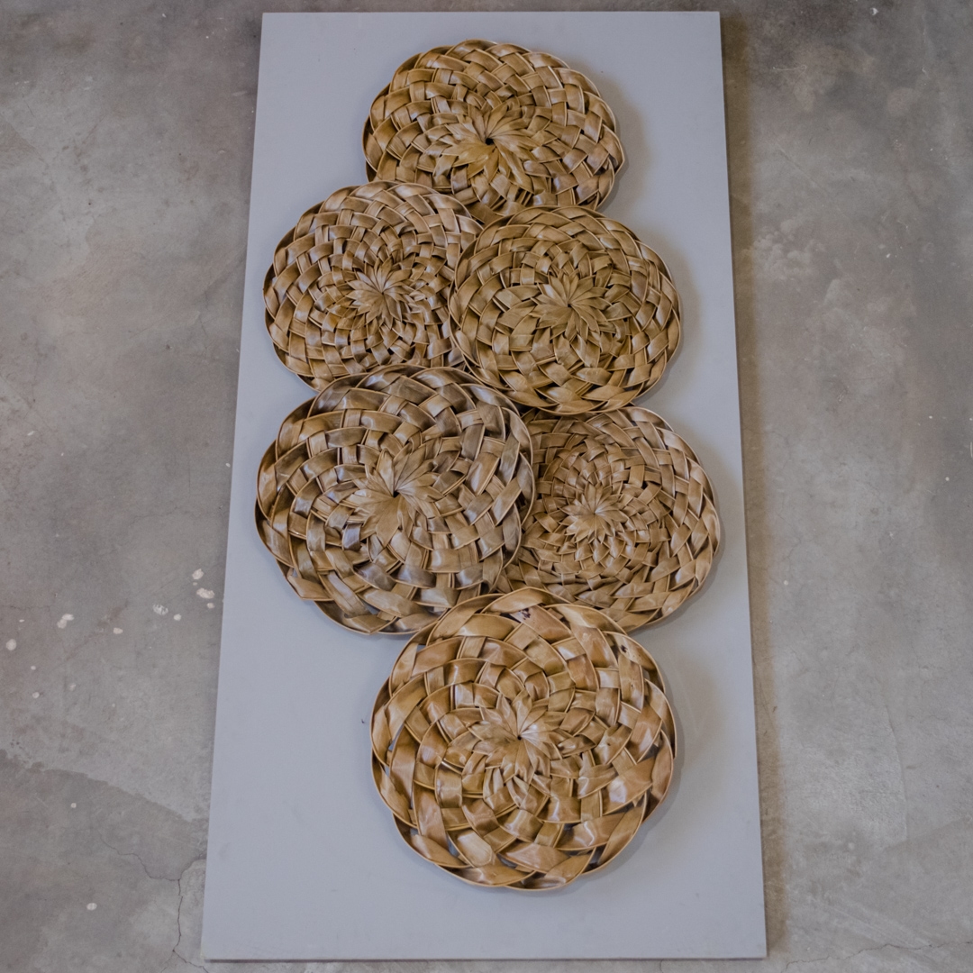 A composição de trançados em palha de carnaúba agrega a beleza do feito à mão, criando um espaço de beleza, quietude e conforto que as fibras naturais evocam. São criadas com pigmentos naturais e fibras tecidas de modo sustentável, respeitando o tempo da natureza, da colheita e feitio, dentro de uma sistema produtivo ancestral e milenar.