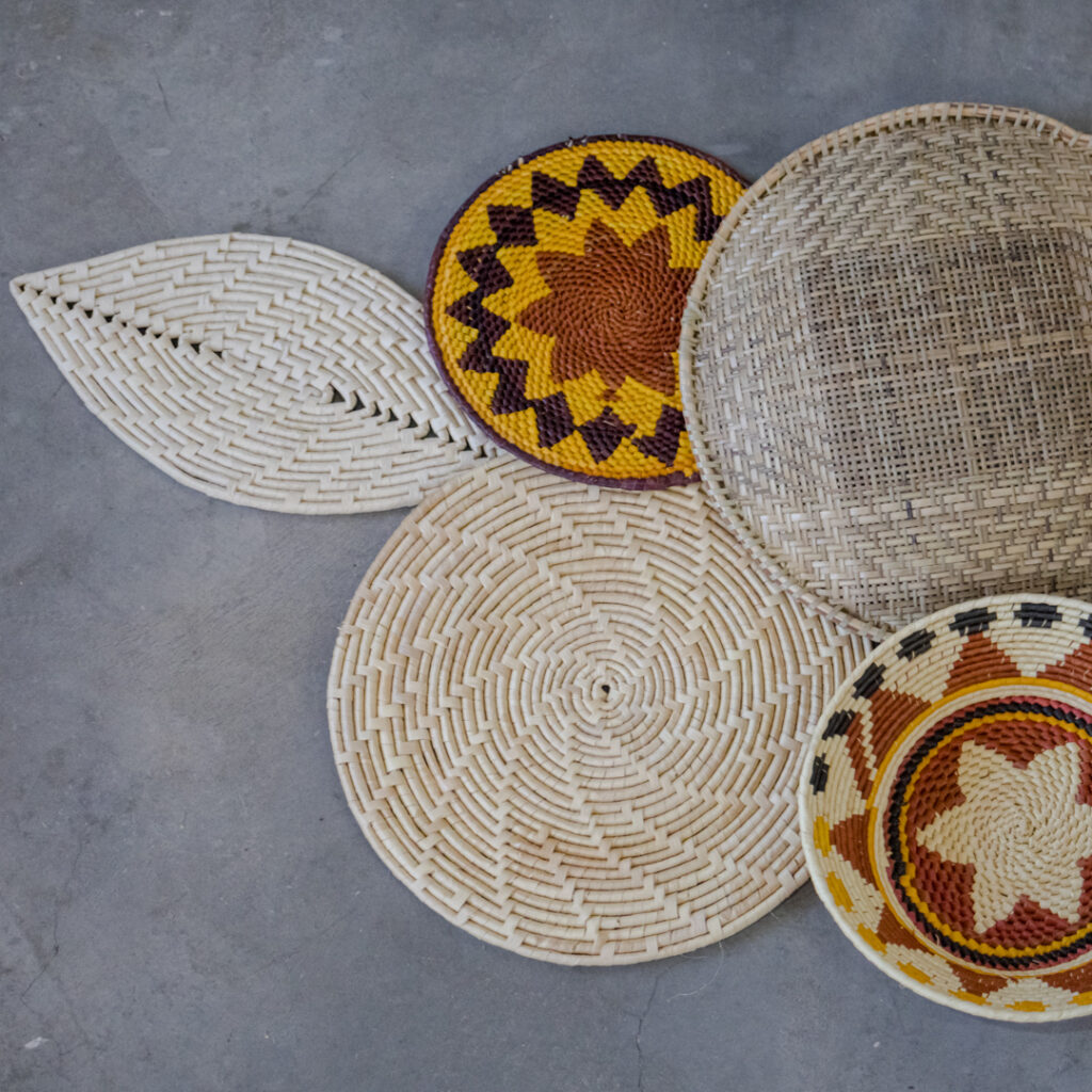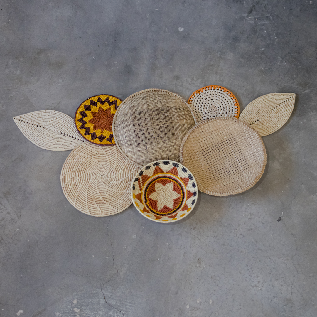 A composição de trançados em palha de carnaúba agrega a beleza do feito à mão, criando um espaço de beleza, quietude e conforto que as fibras naturais evocam. São criadas com pigmentos naturais e fibras tecidas de modo sustentável, respeitando o tempo da natureza, da colheita e feitio, dentro de uma sistema produtivo ancestral e milenar.