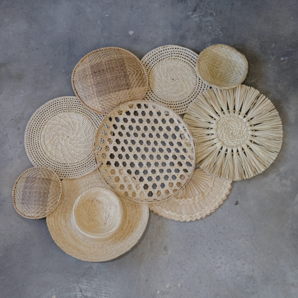 A composição de trançados em palha de carnaúba agrega a beleza do feito à mão, criando um espaço de beleza, quietude e conforto que as fibras naturais evocam. São criadas com pigmentos naturais e fibras tecidas de modo sustentável, respeitando o tempo da natureza, da colheita e feitio, dentro de uma sistema produtivo ancestral e milenar.