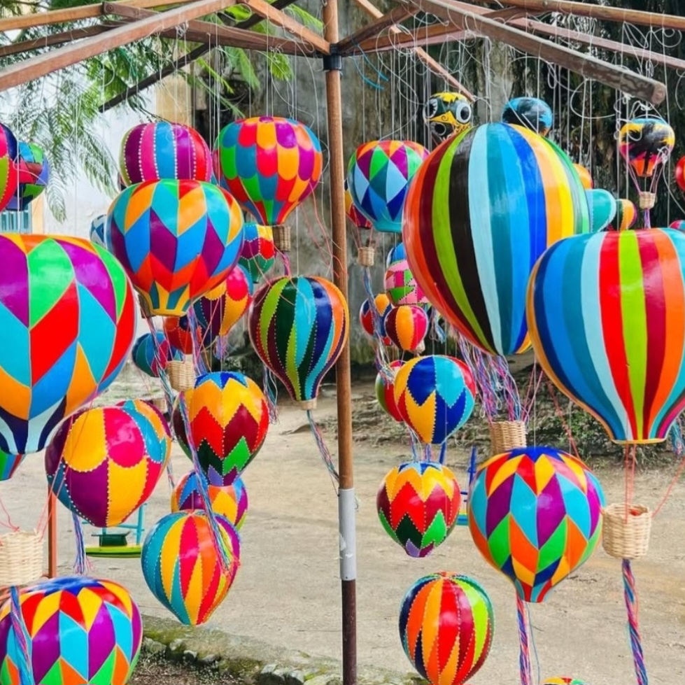 É a partir das cabaças que Idembergue Tenório cria seus balões coloridos. Natural de Paraty (RJ), esse artesão caiçara conta que seu trabalho surge a partir de uma história de amor: apaixonado por uma pessoa que fazia esses balões, o artesanato era uma desculpa para passar mais tempo e aprender com ela. Aos poucos foi encontrando no artesanato mais uma grande paixão, e ja soma maos de 23 anos dedicados a esse fazer.