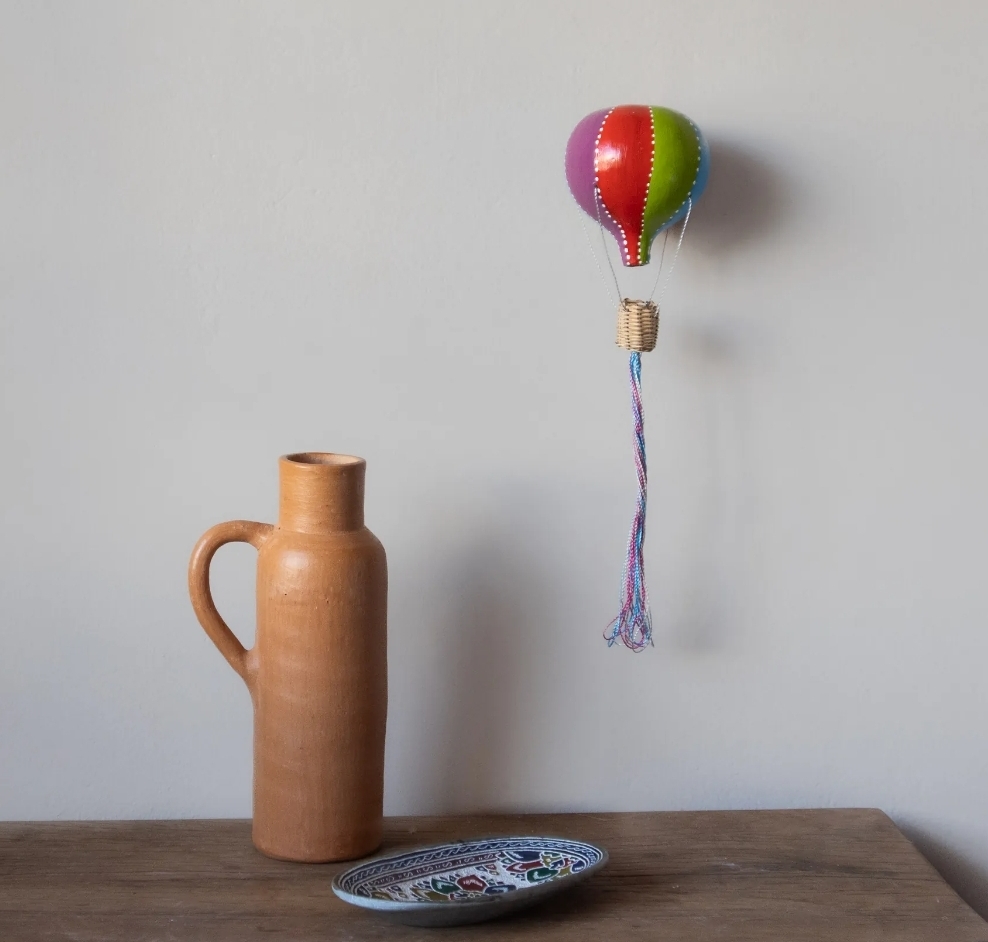 Balão colorido feiro em cabaça pintado a mão, com suporte para pendurar