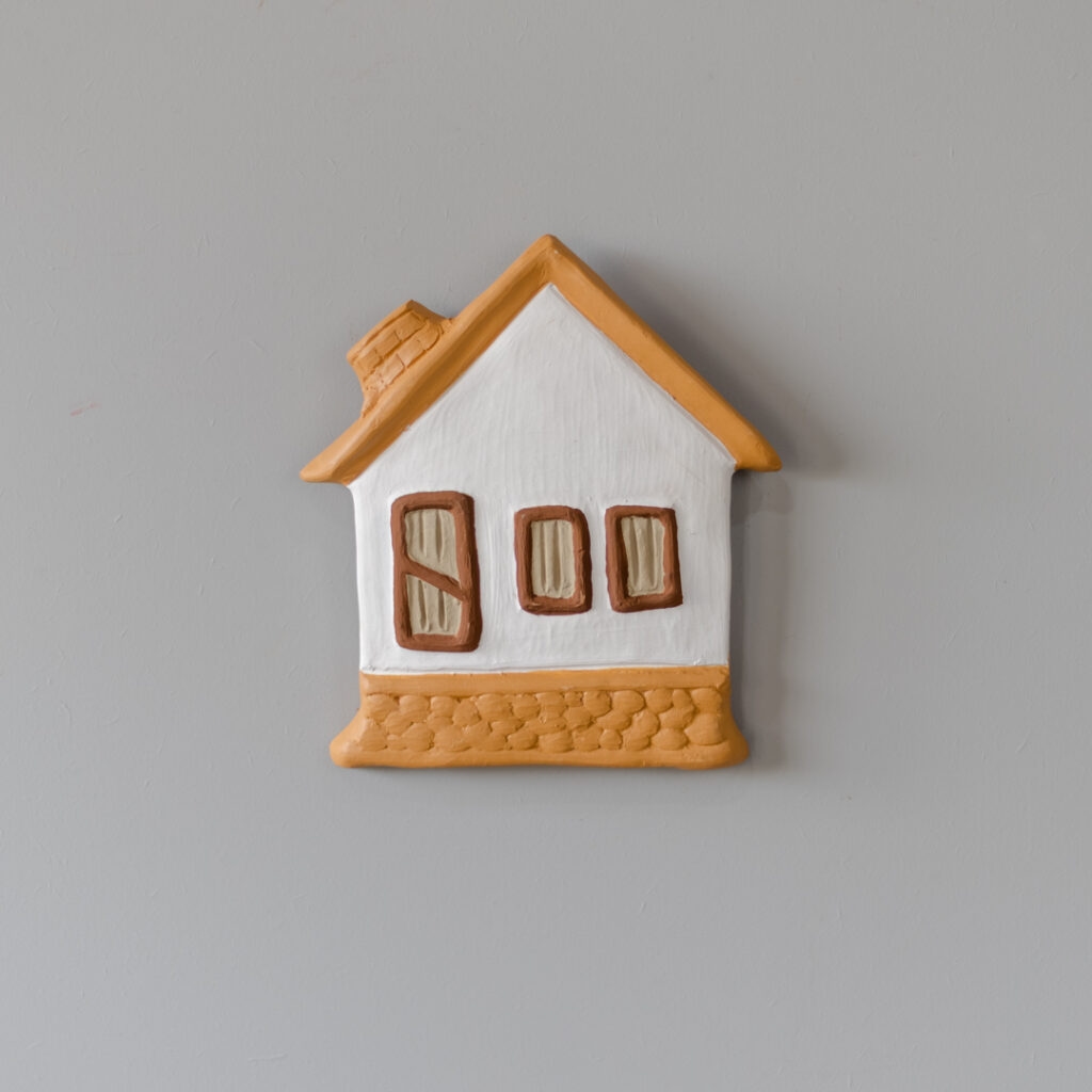 Casinha de cerâmica de parede pintada e feita manualmente