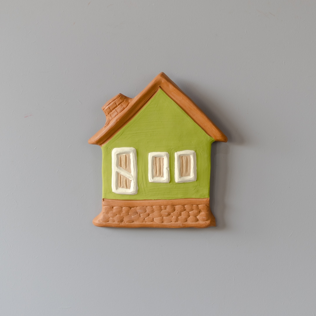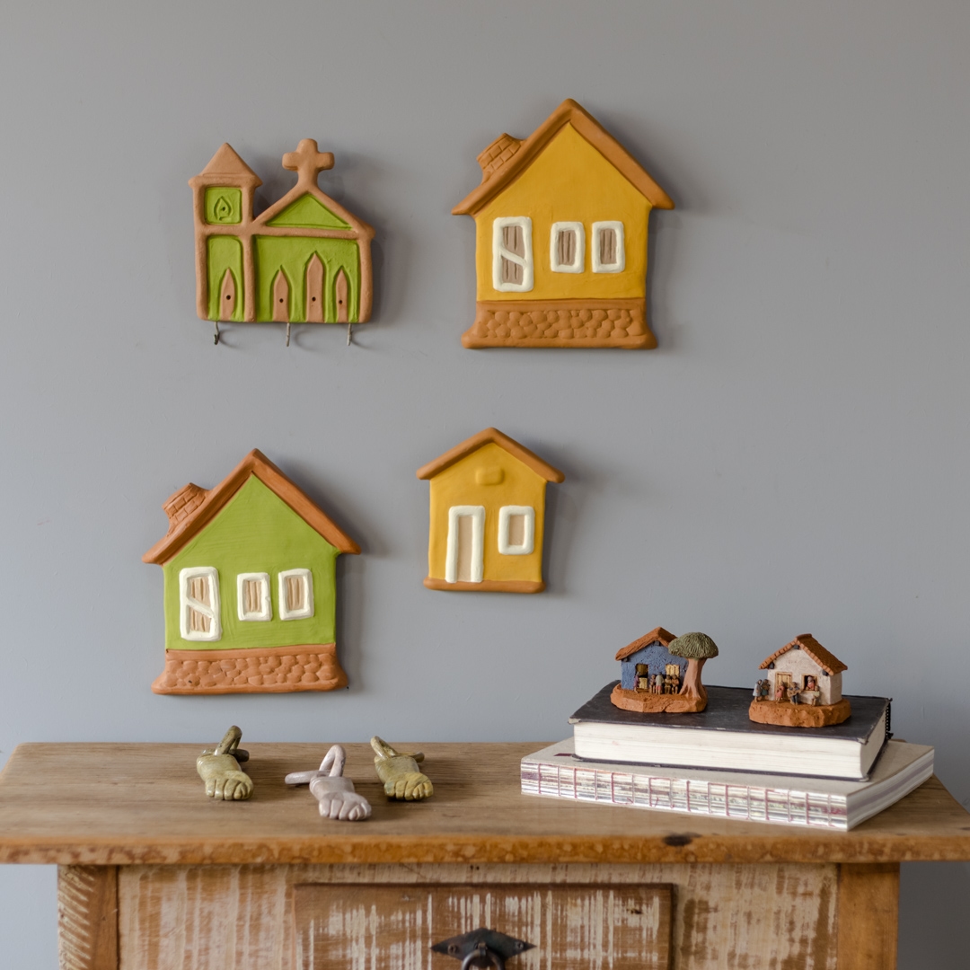 Casinha de cerâmica de parede pintada e feita manualmente