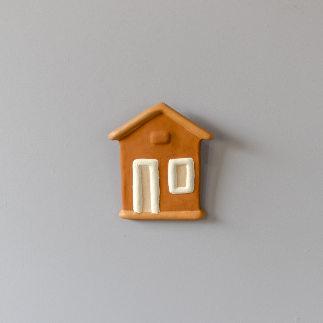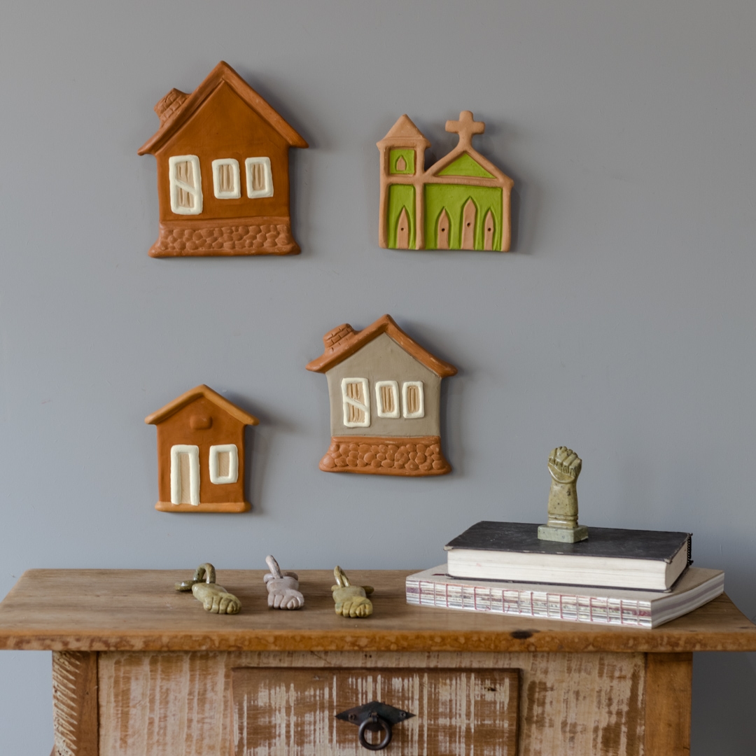 Casinha de cerâmica de parede pintada e feita manualmente