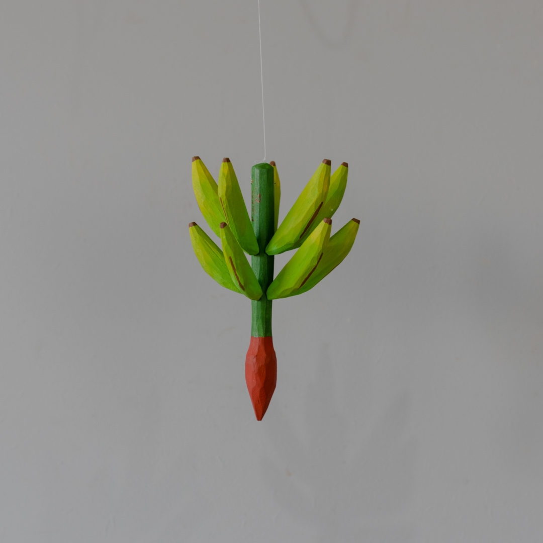 Cacho de Banana pendente de madeira, esculpido e pintado manualmente