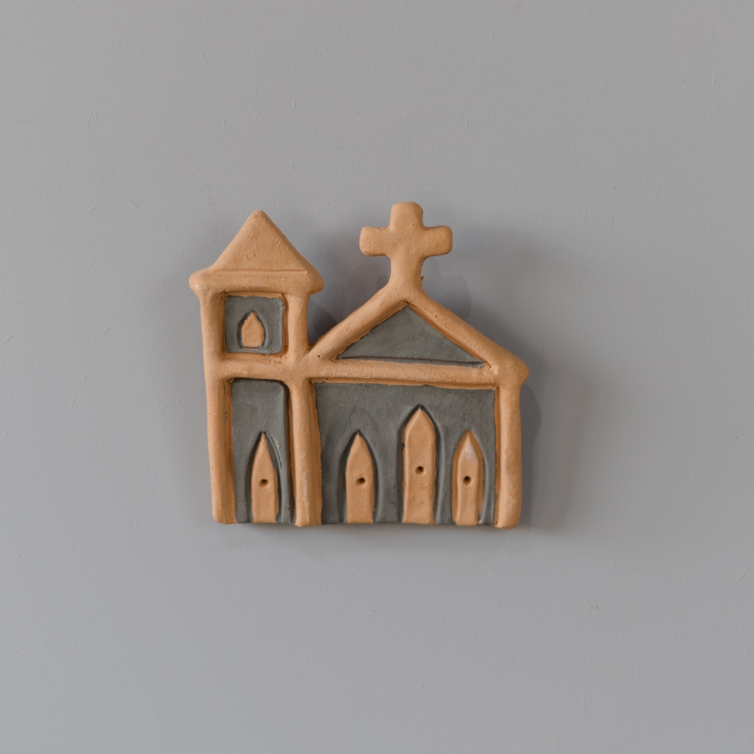 Igrejinha de cerâmica de parede pintada e feita manualmente