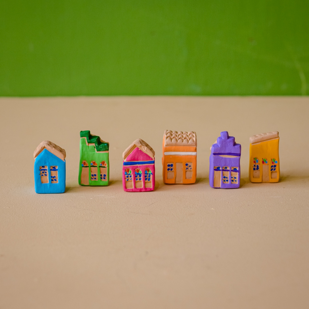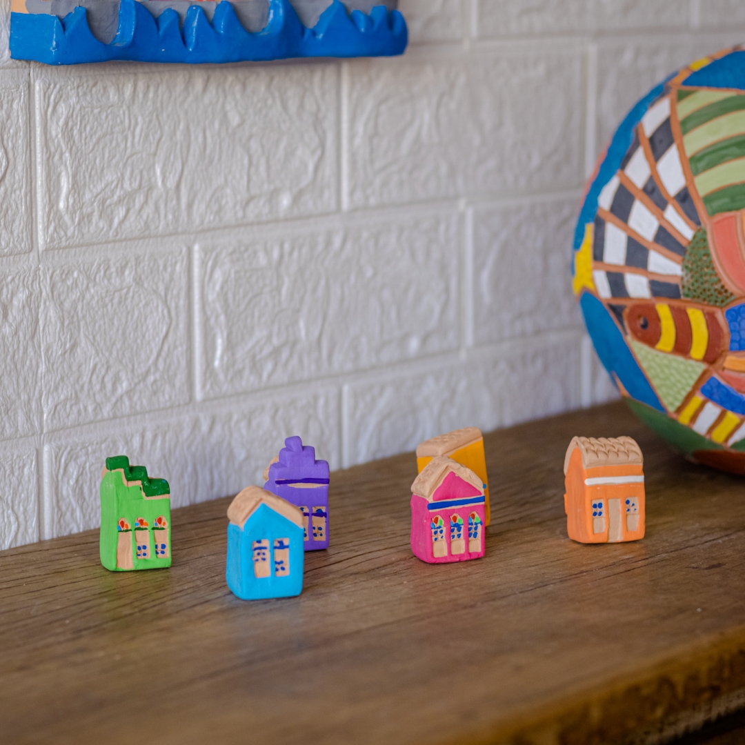 Conjunto 6 casinhas de cerâmica com suporte para parede