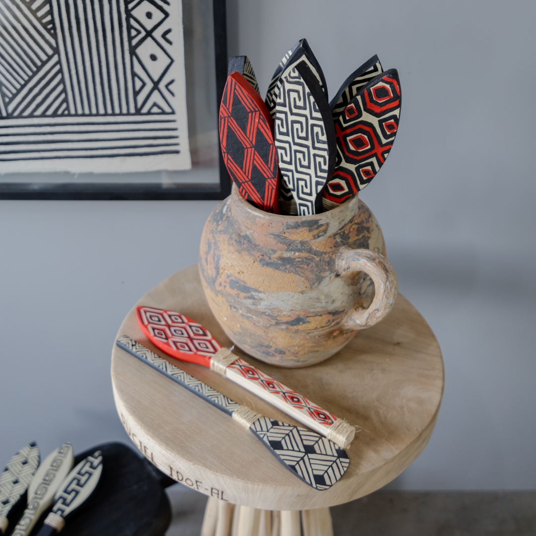 Mini Remo de parede em madeira pintada manualmente com grafismos