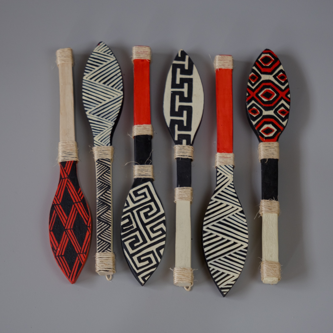 Mini Remo de parede em madeira pintada manualmente com grafismos