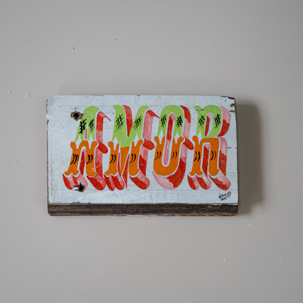 Hidaías nasceu no Pará, no coração da Amazônia, e desde cedo se aproximou da tradição de pintar embarcações e fachadas com letras ornamentadas e arabescos coloridos. Aprendeu observando os mestres que trabalhavam nos portos e comunidades ribeirinhas, onde cada barco ganhava identidade própria através da pintura. Ao longo dos anos, desenvolveu seu estilo, combinando técnicas herdadas com a liberdade criativa de sua própria trajetória. Hoje, integra o projeto Abridores de Letras, que reúne artistas da Amazônia comprometidos em valorizar essa prática como patrimônio cultural e linguagem artística. Em suas obras, Hidaías mantém vivo o gesto ancestral de “abrir letras” no casco dos barcos, mas também amplia seus sentidos, sem perder o vínculo com as águas e as memórias.