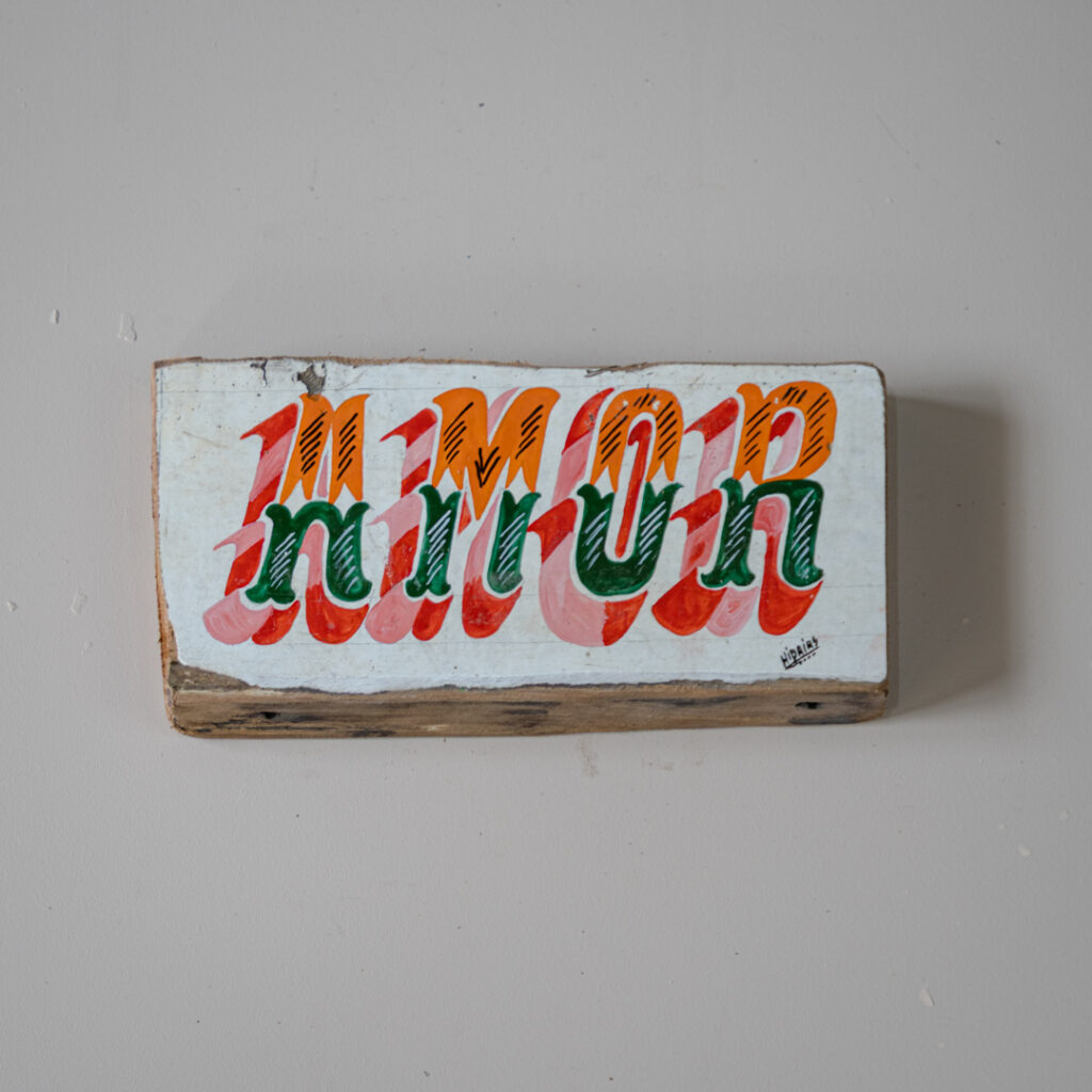 Hidaías nasceu no Pará, no coração da Amazônia, e desde cedo se aproximou da tradição de pintar embarcações e fachadas com letras ornamentadas e arabescos coloridos. Aprendeu observando os mestres que trabalhavam nos portos e comunidades ribeirinhas, onde cada barco ganhava identidade própria através da pintura. Ao longo dos anos, desenvolveu seu estilo, combinando técnicas herdadas com a liberdade criativa de sua própria trajetória. Hoje, integra o projeto Abridores de Letras, que reúne artistas da Amazônia comprometidos em valorizar essa prática como patrimônio cultural e linguagem artística. Em suas obras, Hidaías mantém vivo o gesto ancestral de “abrir letras” no casco dos barcos, mas também amplia seus sentidos, sem perder o vínculo com as águas e as memórias.