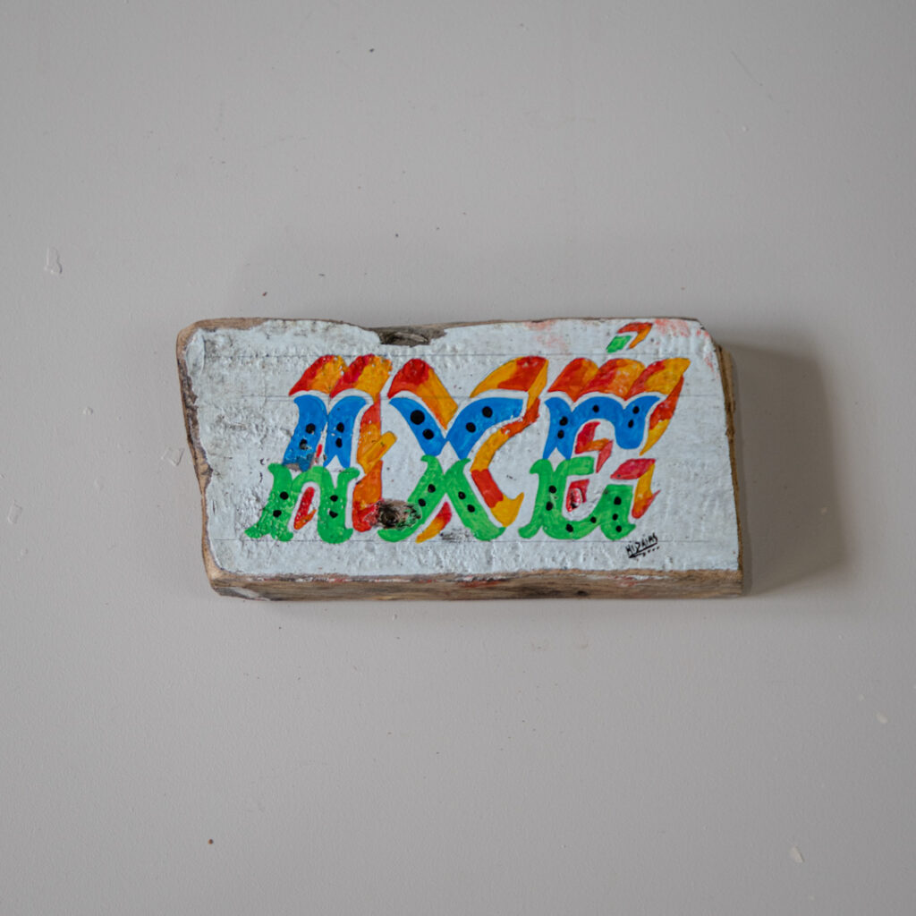 Hidaías nasceu no Pará, no coração da Amazônia, e desde cedo se aproximou da tradição de pintar embarcações e fachadas com letras ornamentadas e arabescos coloridos. Aprendeu observando os mestres que trabalhavam nos portos e comunidades ribeirinhas, onde cada barco ganhava identidade própria através da pintura. Ao longo dos anos, desenvolveu seu estilo, combinando técnicas herdadas com a liberdade criativa de sua própria trajetória. Hoje, integra o projeto Abridores de Letras, que reúne artistas da Amazônia comprometidos em valorizar essa prática como patrimônio cultural e linguagem artística. Em suas obras, Hidaías mantém vivo o gesto ancestral de “abrir letras” no casco dos barcos, mas também amplia seus sentidos, sem perder o vínculo com as águas e as memórias.