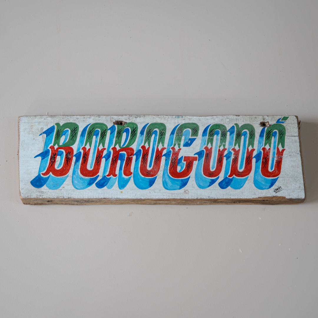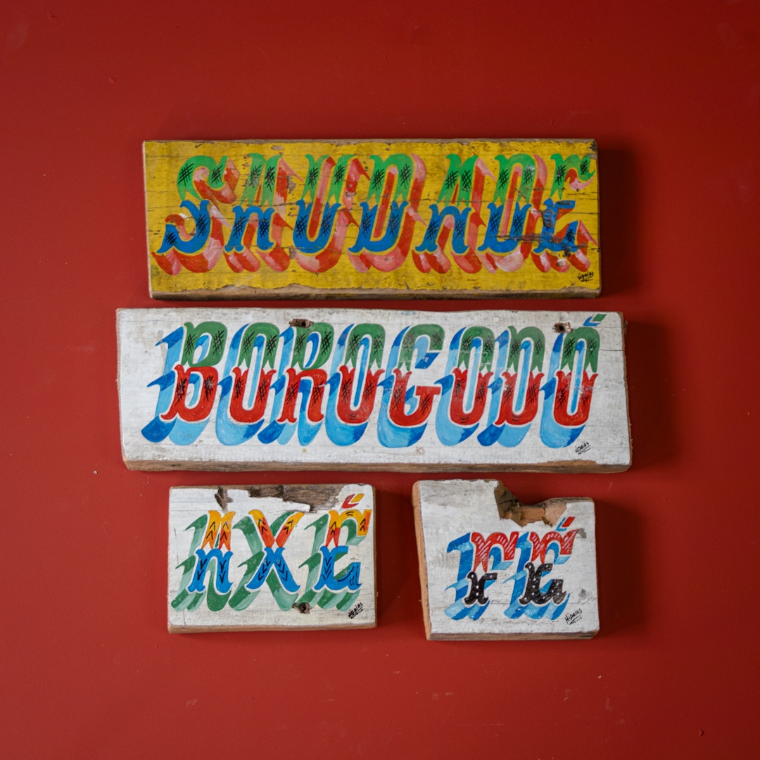 Placa para parede feita em madeira de barcos e escrita com letras ornamentadas