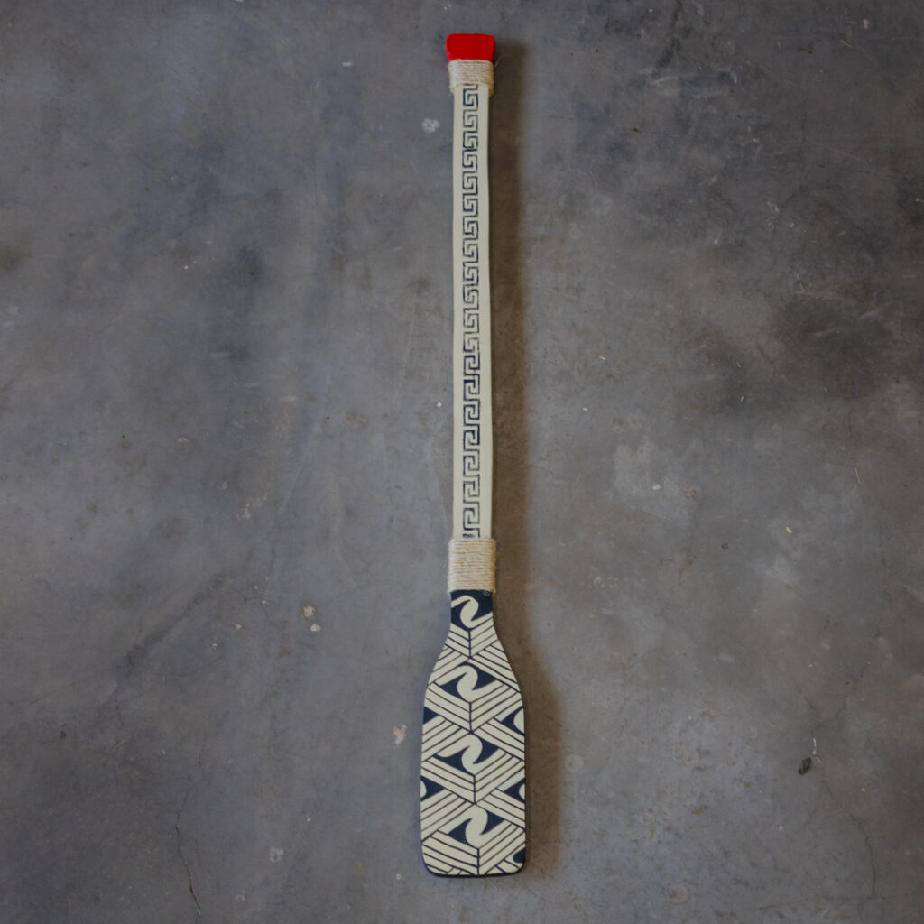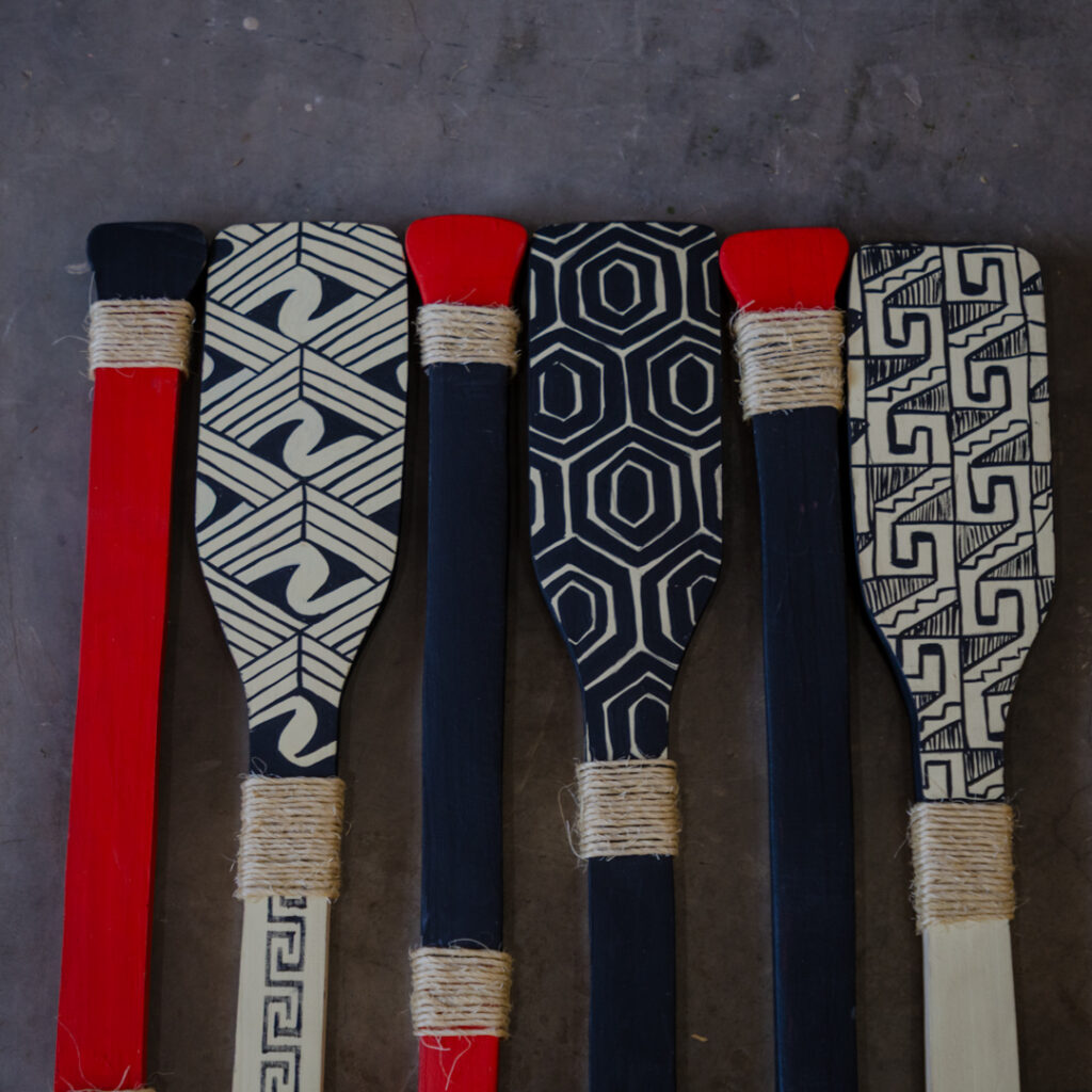 Remo de parede em madeira pintada manualmente com grafismos