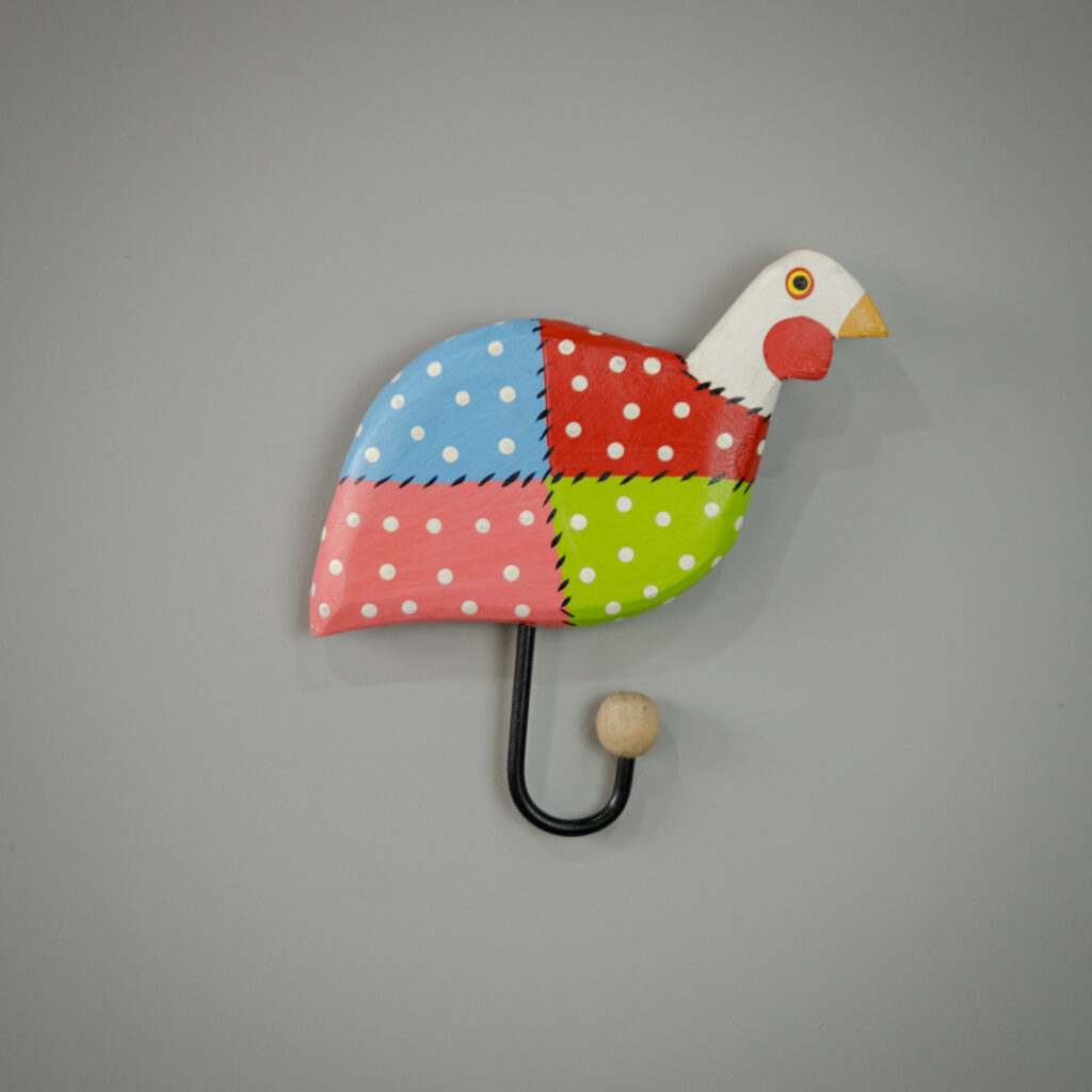 Gancho de Madeira para parede Galinha D'Angola Colorida