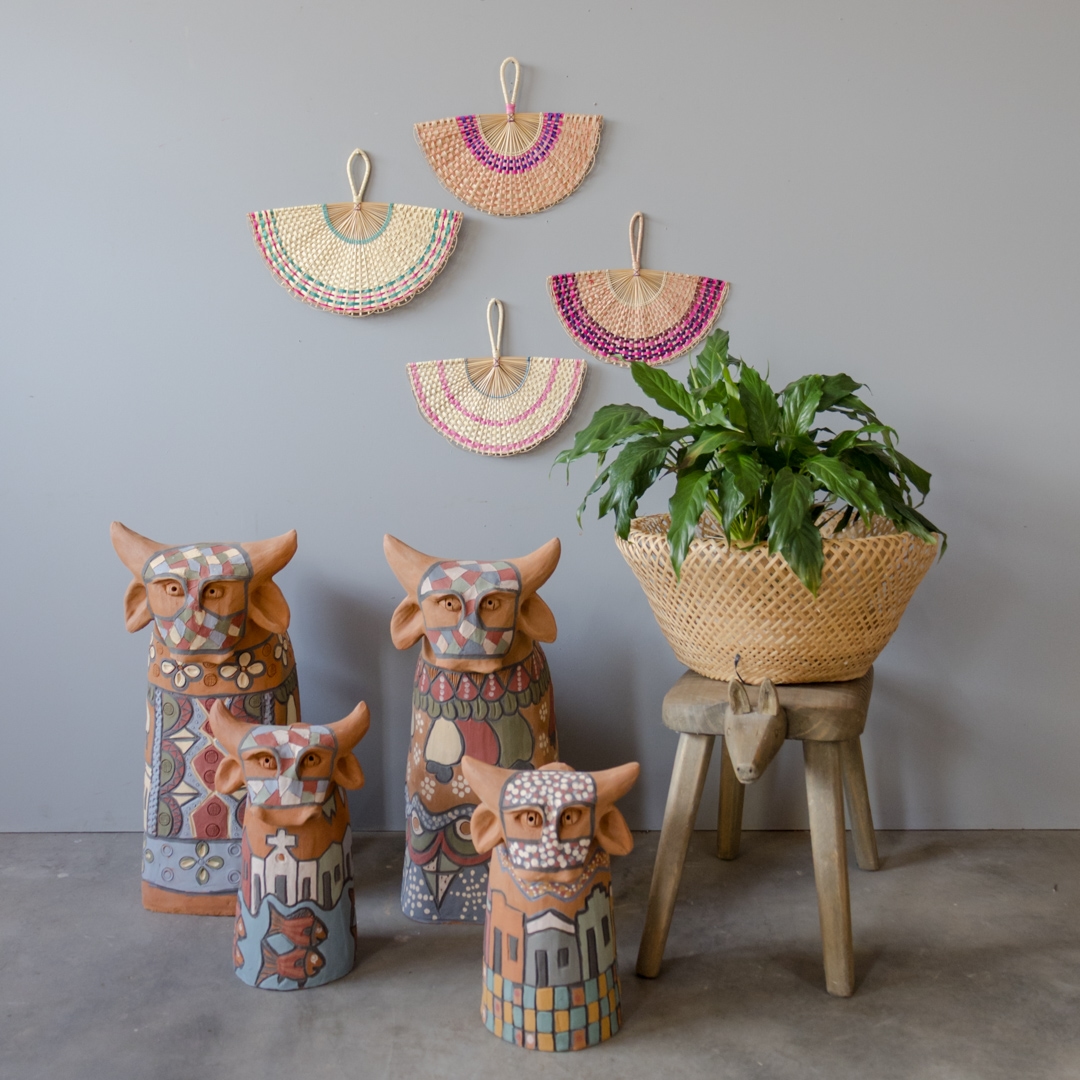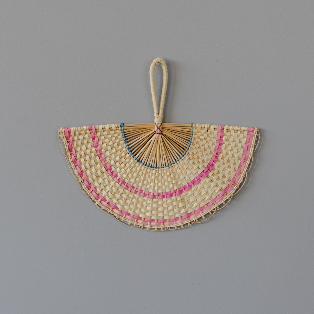 Leque de palha colorido, trançado em fibra de buriti pela etnia indígena Baré