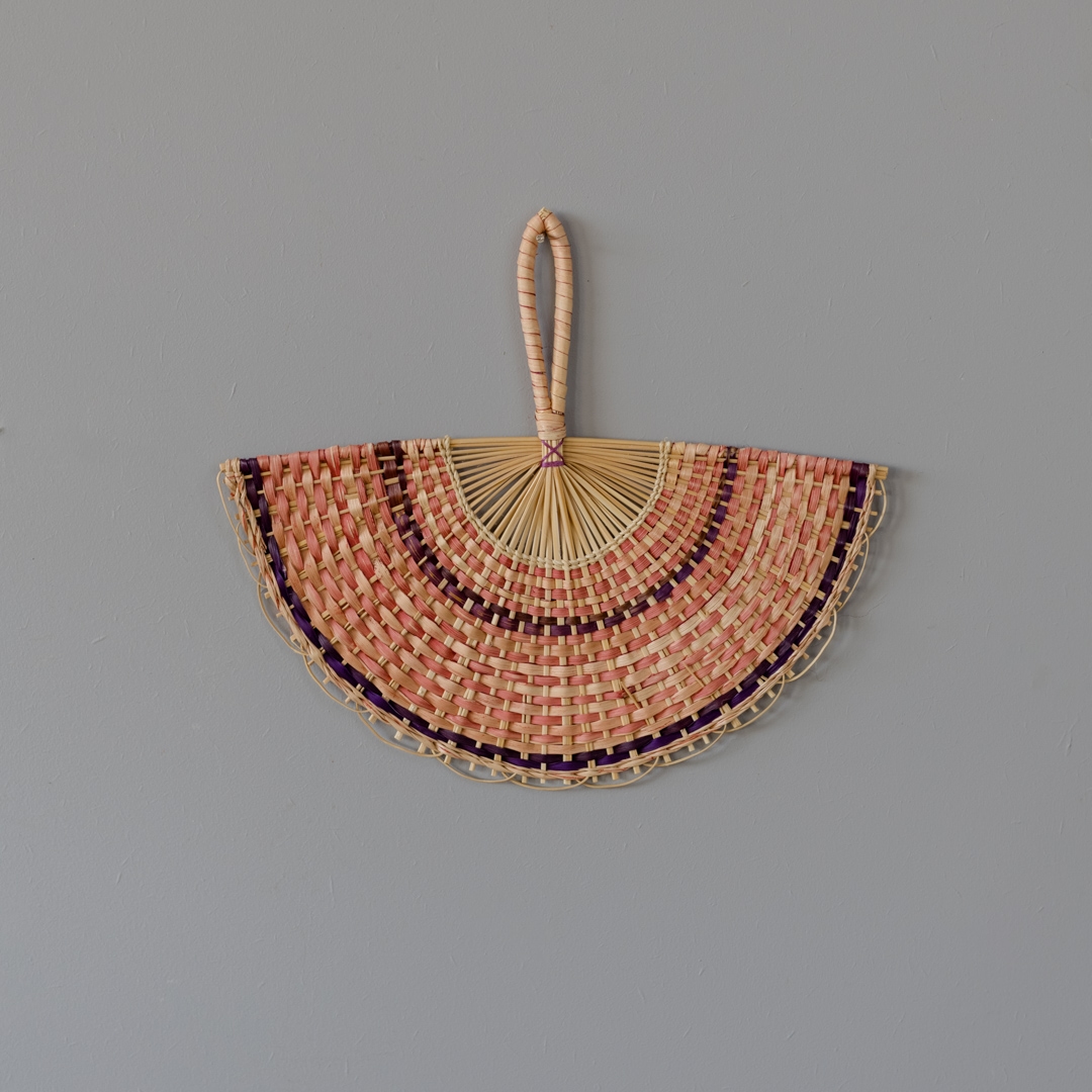 Leque de palha colorido, trançado em fibra de buriti pela etnia indígena Baré
